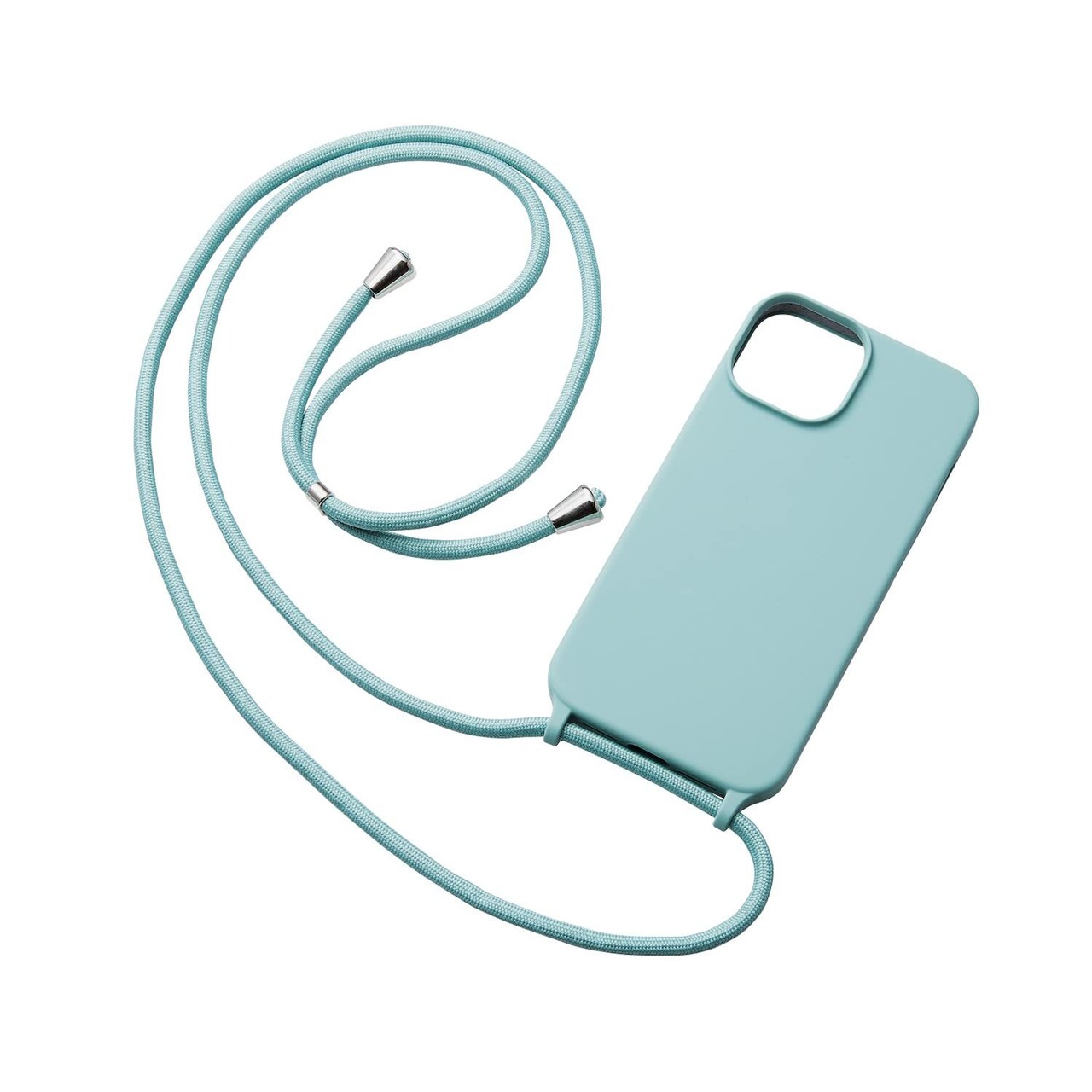持ち運びに便利なショルダーストラップがついた、やわらかく手触りの良いシリコン素材のiPhone 14/iPhone 13用シリコンケースです。
