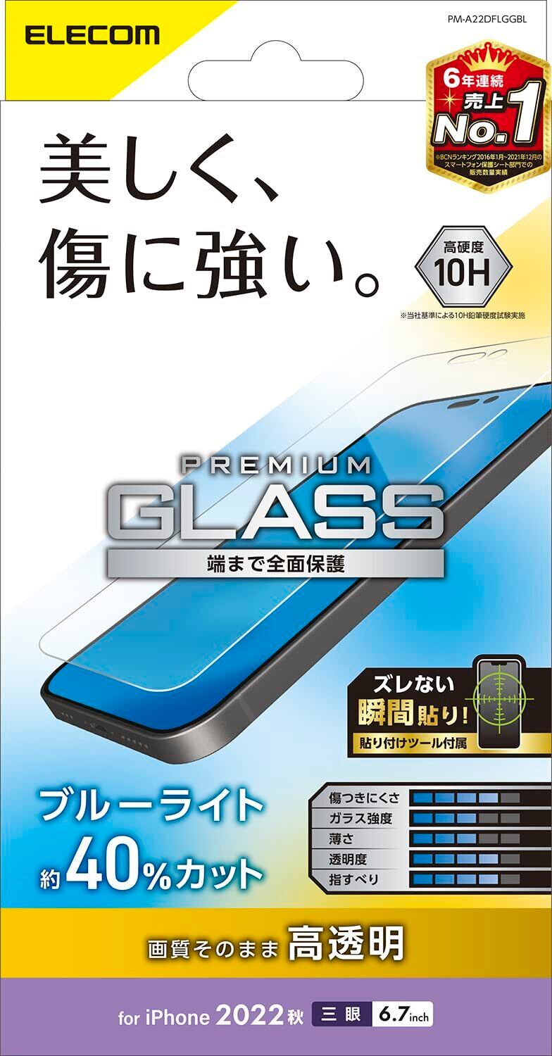 エレコム iPhone 14 Pro Max ガラスフィルム ブルーライトカット 強化ガラス 表面硬度10H 指紋防止 飛散防止 エアーレス 光沢 PM-A22DFLGGBL 1)フィルム単体