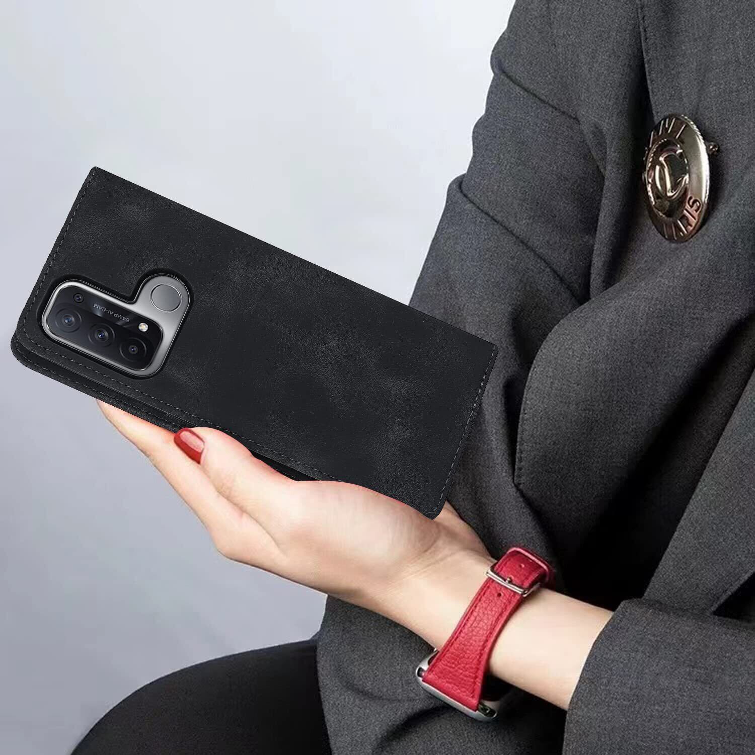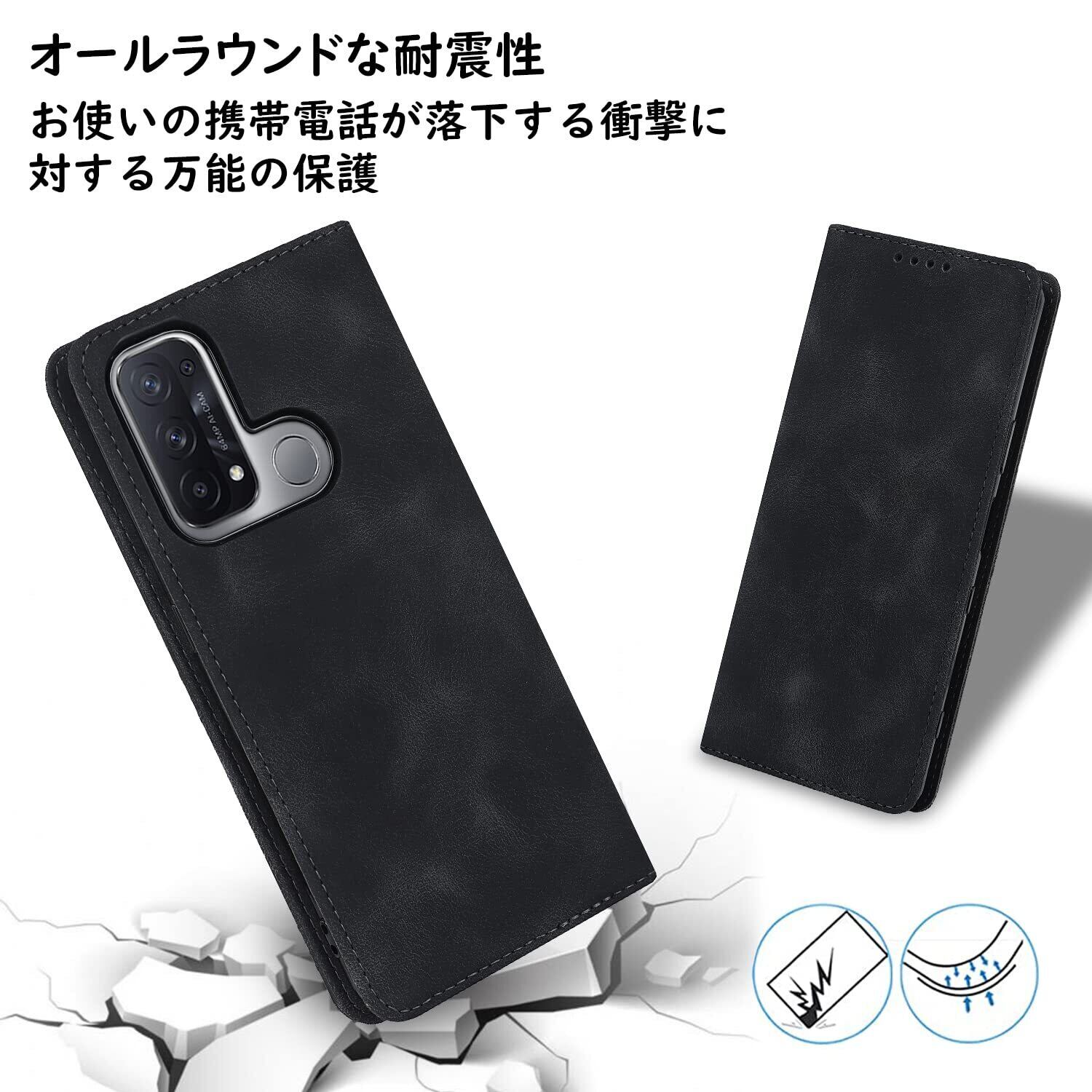 Havaya OPPO Reno5 A ケース オッポ リノ 5 a ケース A1010P A103OP スマホケース CPH2199 手帳型 ストラップ 耐衝撃 au/docomo 楽天モバイル マグネット式 カード収納 レザー スエードの質感-ブラック