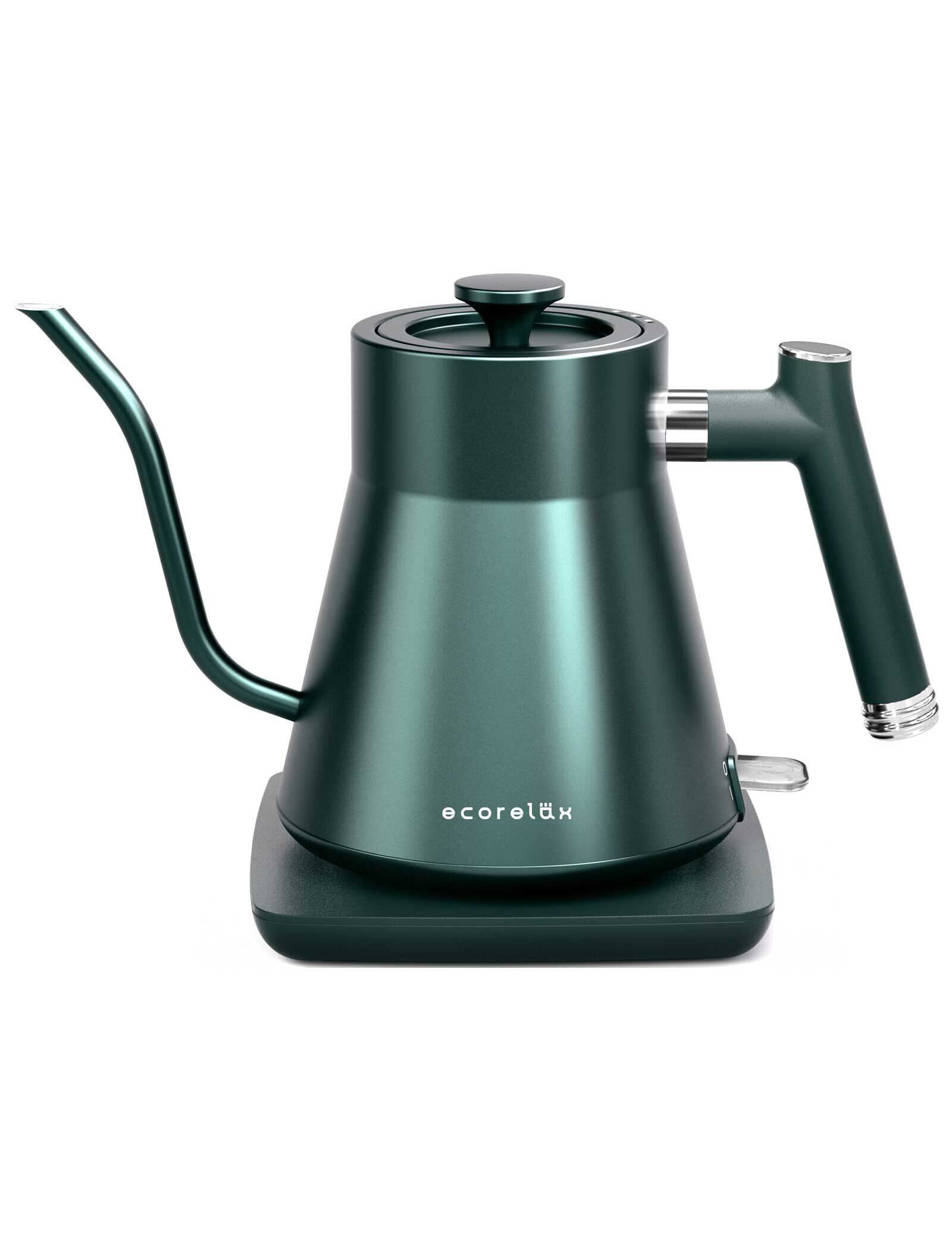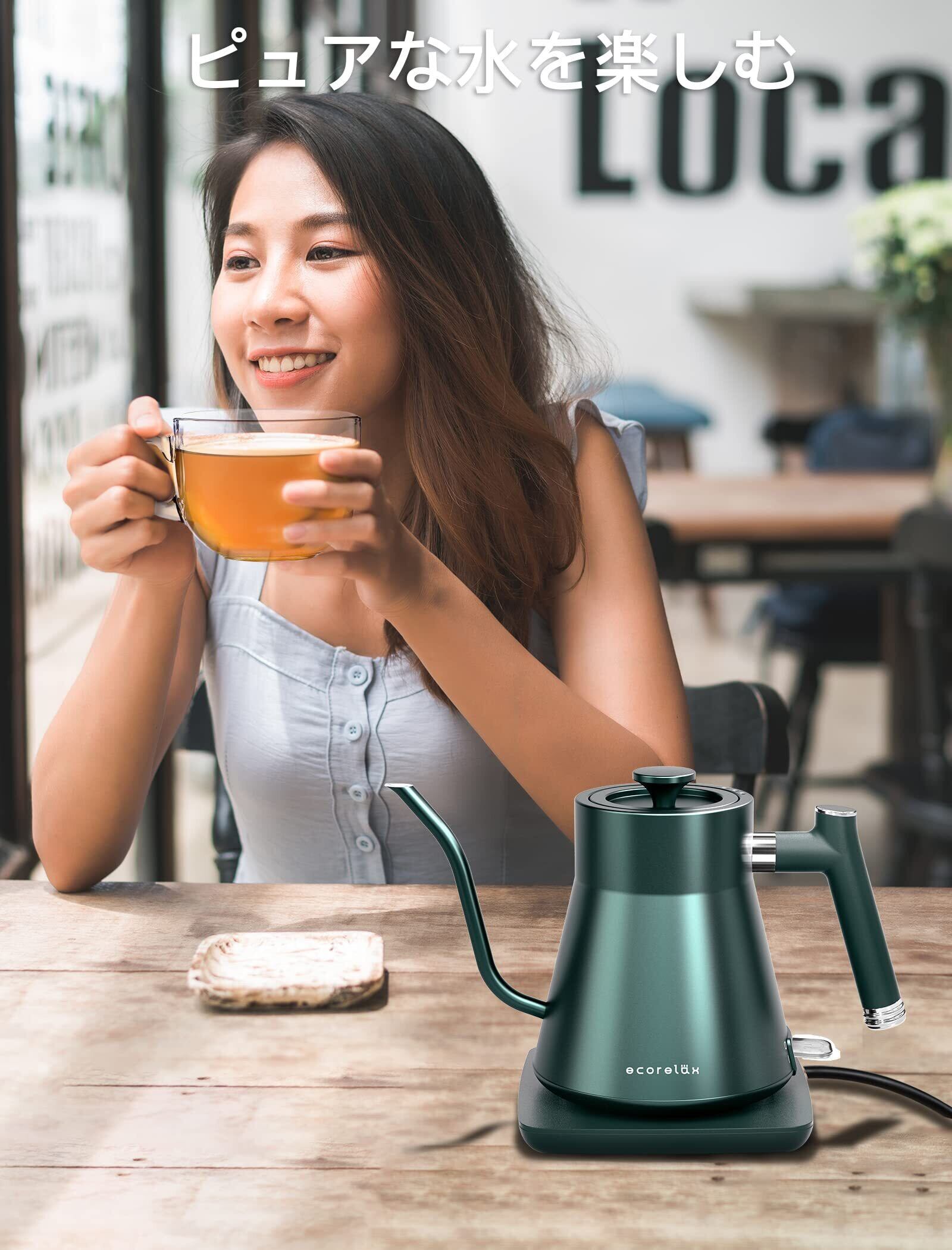 【ECORELAX】電気ケトル 小型 0.8L 深緑|おしゃれ家電 細口ドリップケトル コーヒーポット|北欧風デザイン|急速沸騰 1200W・静音・自動電源OFF・空焚き防止|PSE認証済 説明書付き