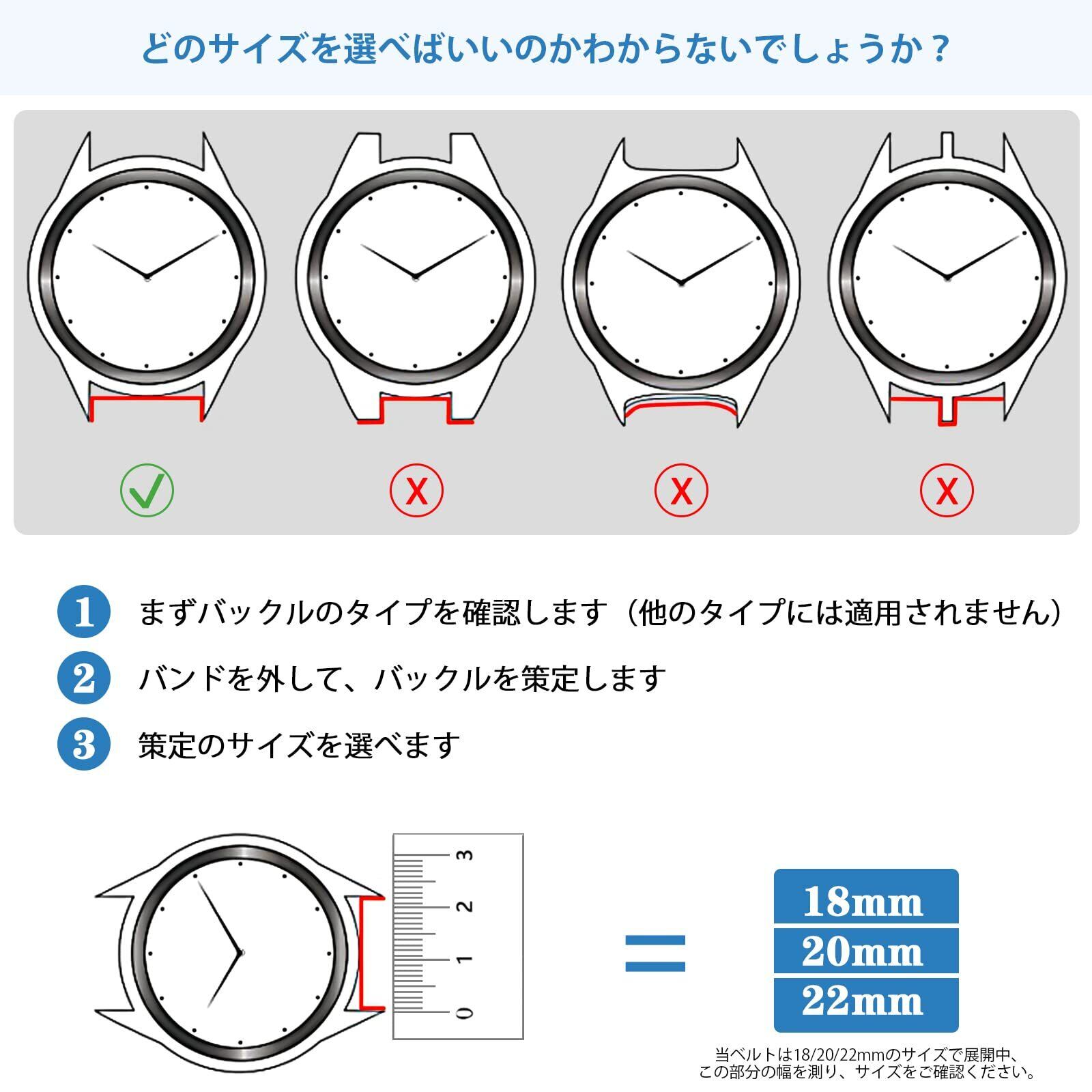 【幅広い適応・簡単に取り付け】この時計バンドは幅18mm、20 mmまたは22 mmのスプリングバーを使うクラシックウォッチとスマートウォッチに適用します。クイックリリース技術により、スプリングバーを押すだけで、簡単に取り付けます。