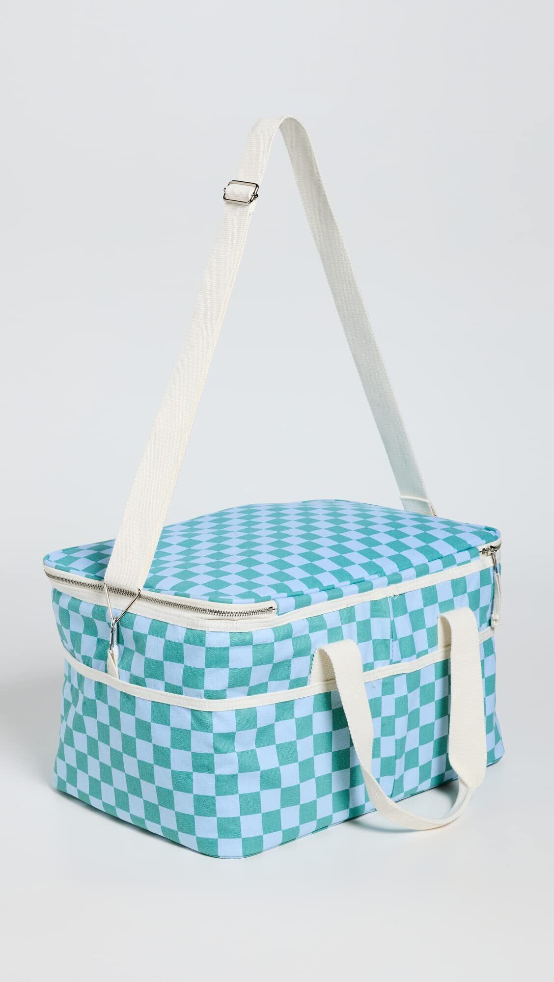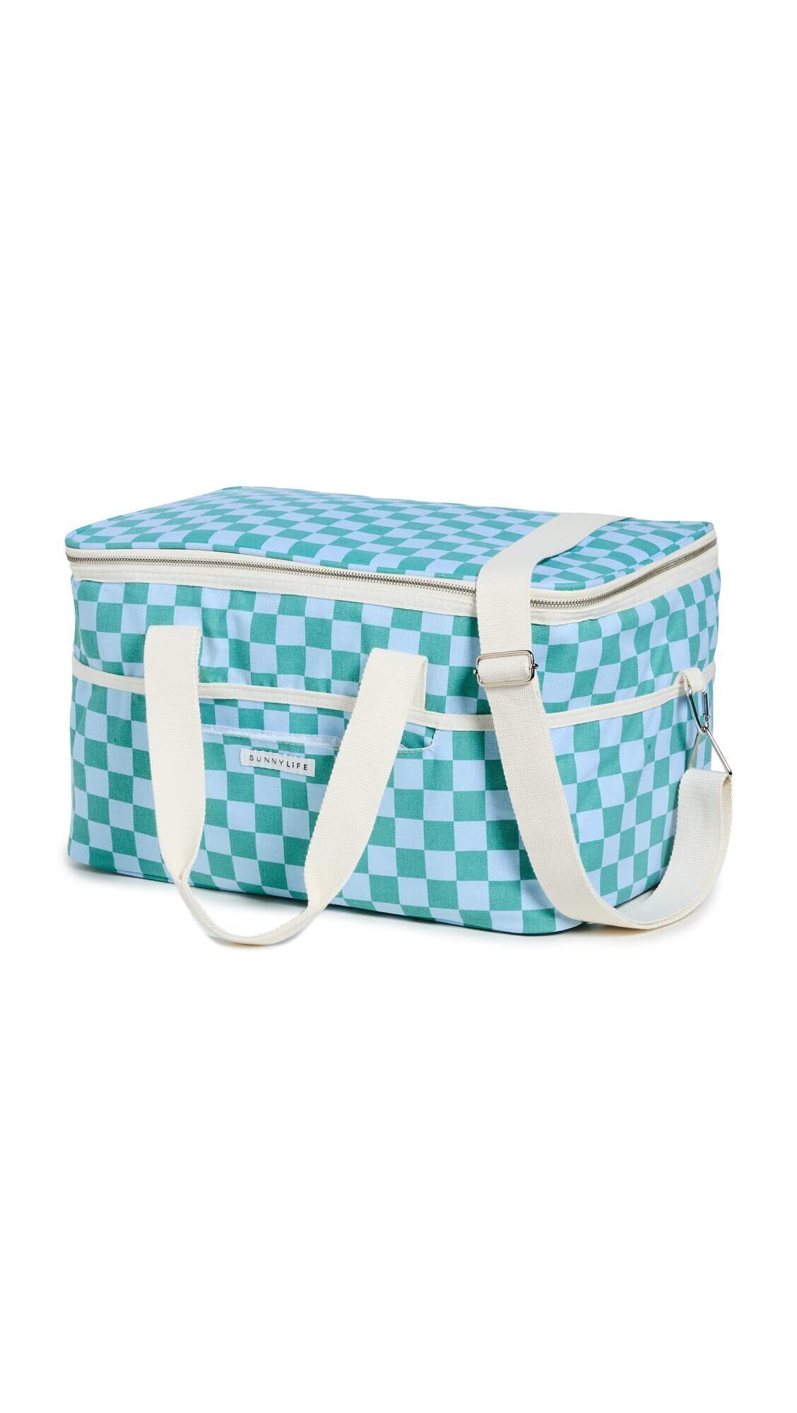 ブルーの市松模様がかわいいクーラーバック。 大容量の30Lで、保冷機能は4時間持続します。 取り外し可能なショルダーストラップ付きで、持ち運びも簡単です。