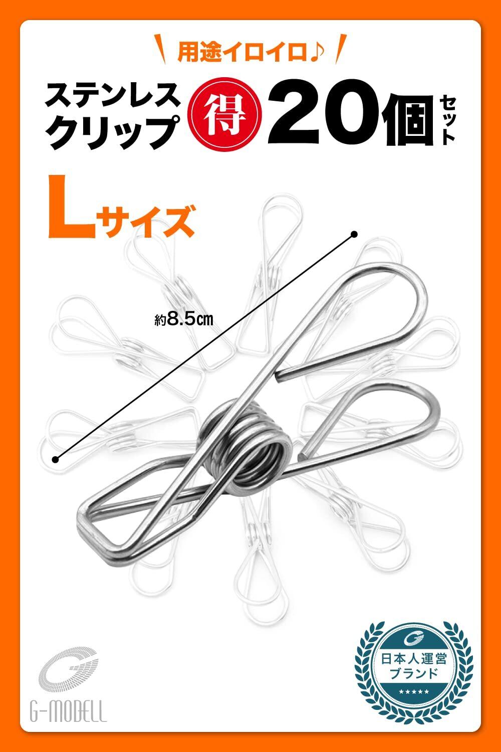 G-MODELL 洗濯バサミ せんたくばさみ 洗濯ばさみ ステンレス 強力 防風 20個セット (L)