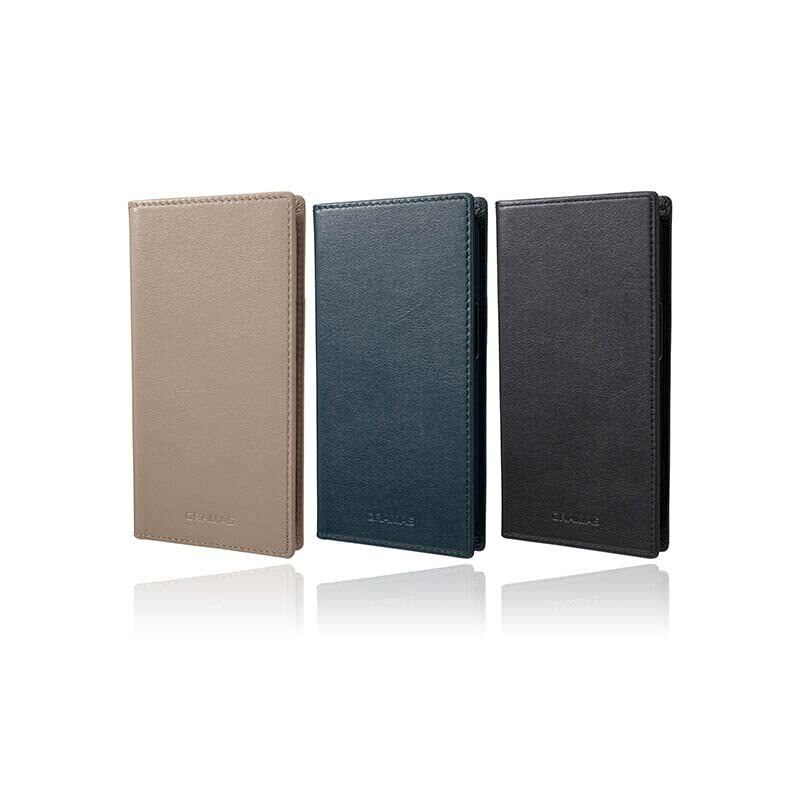 “G-FOLIO (ジーフォリオ)”デザイン面:外側には、つなぎ目のない一枚革を使用。さらに内側ケース部分の側面にも同じレザーを貼り、どの角度からも統一感のある仕上がりにしています。革製品としての魅力を存分にお楽しみいただける手帳型ケースです。