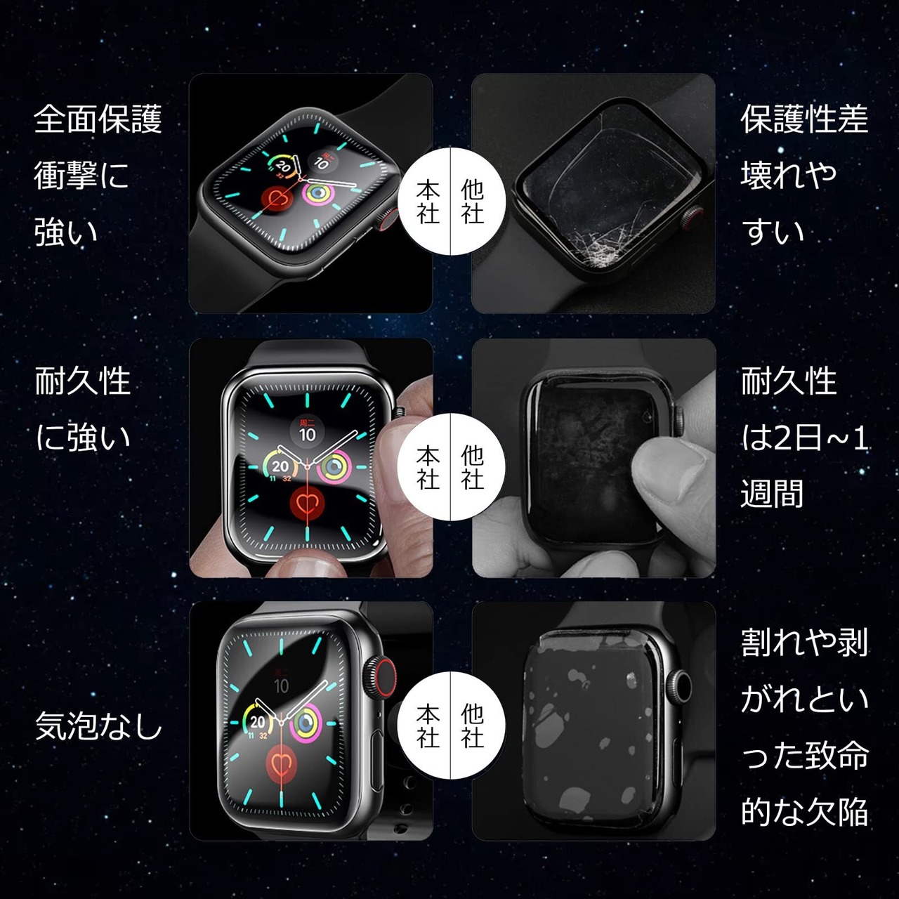 高品質素材: Apple Watch フィルムは日本製旭硝子フィルムのTPU材 。本製品は100000回以上もテストされており、摩擦および衝撃による損傷はなく、スマートウォッチ本来の美しさをそのままに保つことが可能です。