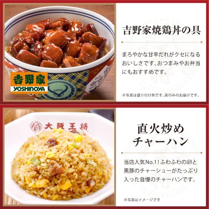 【商品内容】・牛丼の具(1袋120g)×2・豚丼の具(1袋120g)×2・親子丼の具(1袋120g)×2・牛焼肉丼の具(1袋120g)×2・焼鶏丼の具(1袋120g)×2・直火炒めチャーハン(1袋230g)×4・カレーチャーハン(1袋230g)×2・エビ塩チャーハン(1袋210g)×2・ガーリック炒めチャーハン(1袋210g)×2 【保存方法】冷凍(-18℃以下)保存【賞味期限】:60日以上