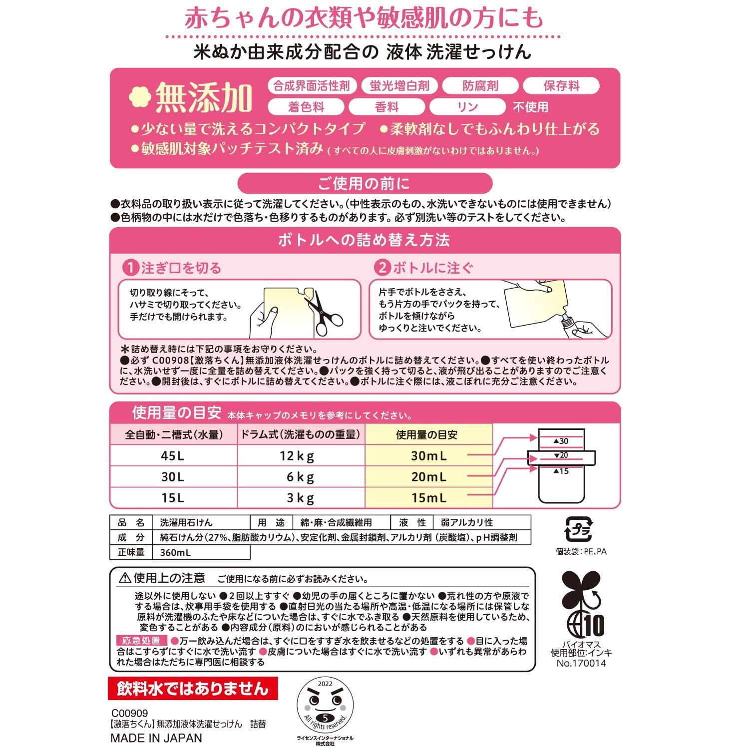レック(LEC) 激落ちくん 無添加 液体 洗濯 せっけん 詰め替え 360mL 米ぬか由来成分配合 ふんわり柔軟剤いらず