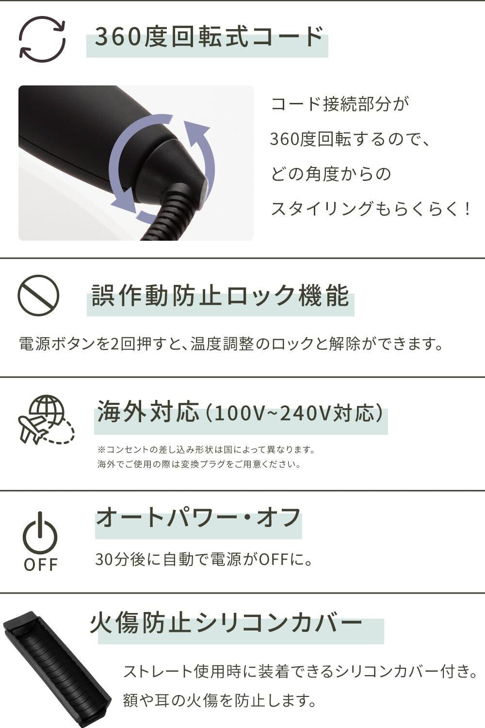 【ストレート も カール もできる 2way ヘアアイロン 】 32mm コテ としても ストレート ヘアアイロン としても使える 2way タイプ。ワンタッチでストレートアイロン から カールアイロン に簡単に切り替えられます。やけど防止 のための ストレート 使用時 に付けられる 耐熱性 シリコンカバー付き。 【幅広 ストレート プレート 】ストレート アイロン のプレートは幅が広めの 31mm 。髪の多い方、長い方もいっぺんに ストレート にできるので 時短 になります。