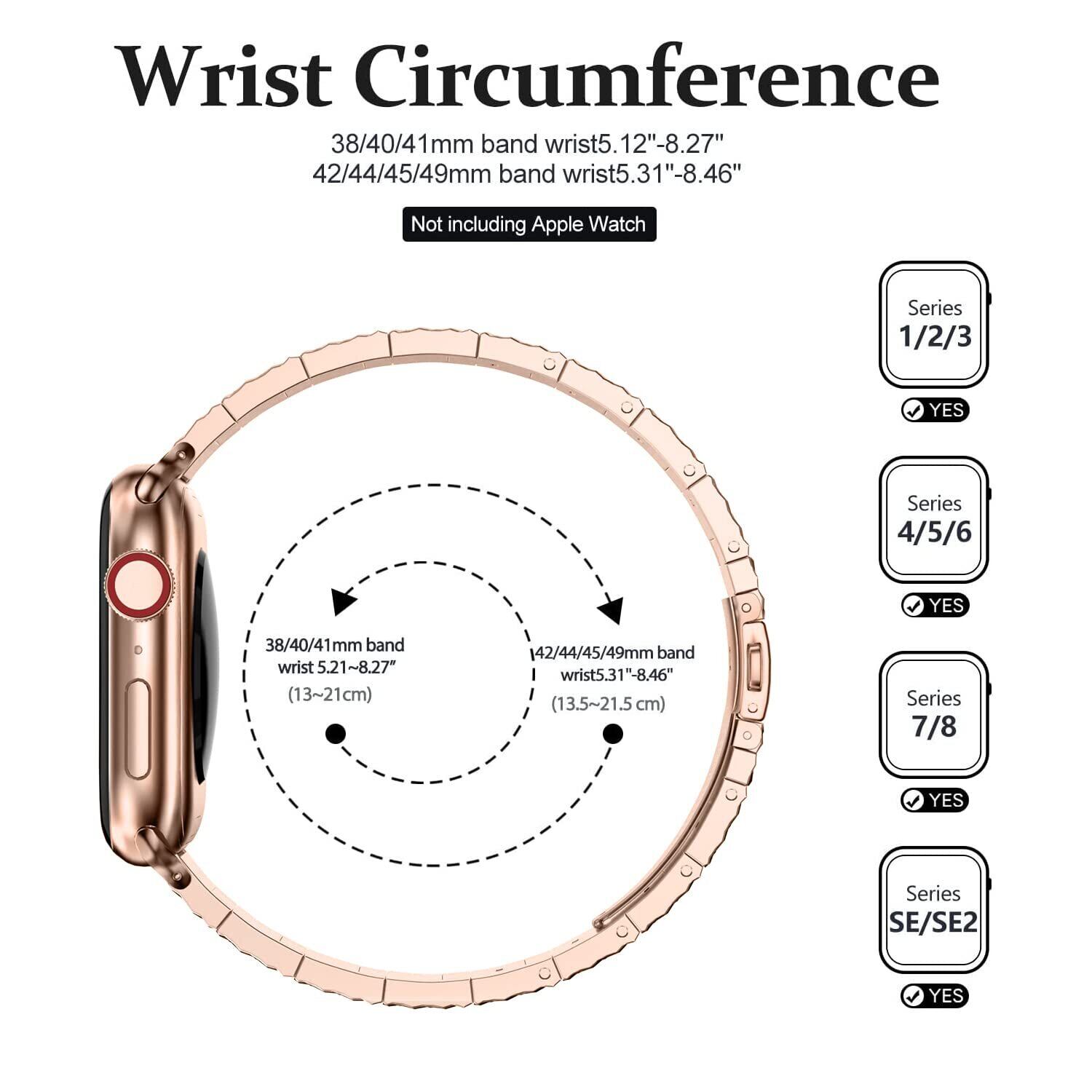 コンパチブル Apple Watch バンド、Wutwuk アップルウォッチ バンド38mm 40mm 41mm 42mm 44mm 45mm シリーズ8 7 6 5 4 3 2 1 SE SE2対応 ステンレススチール ウォッチ ブレスレット レディース (ローズゴールド、38mm/40mm/41mm)