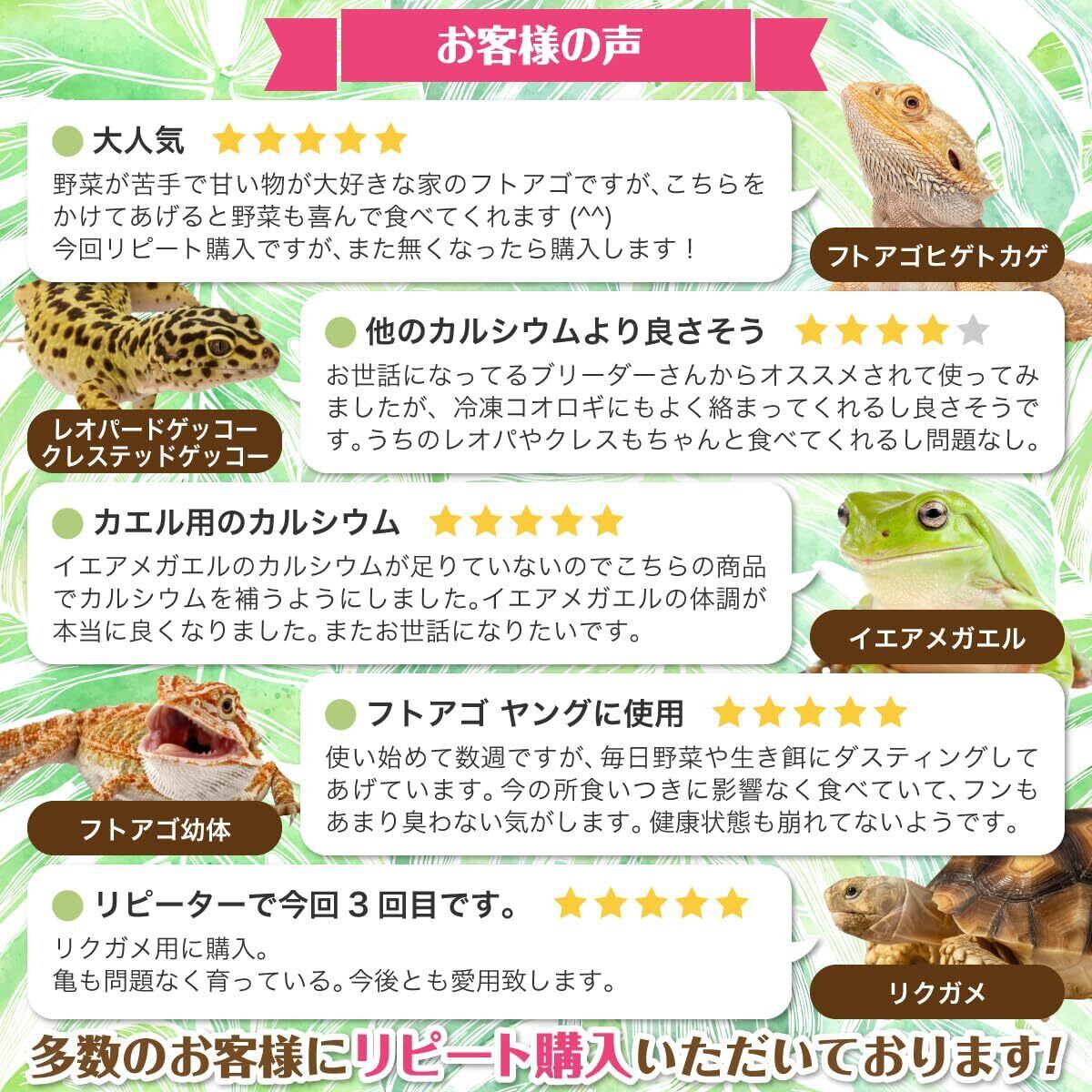 このマルベリーinカルシウムには、植物性カルシウムのほかに爬虫類の大敵である「便秘」を予防する食物繊維やマグネシウムが含まれています。他にもビタミンA,B,C,E、… 表示を増やす