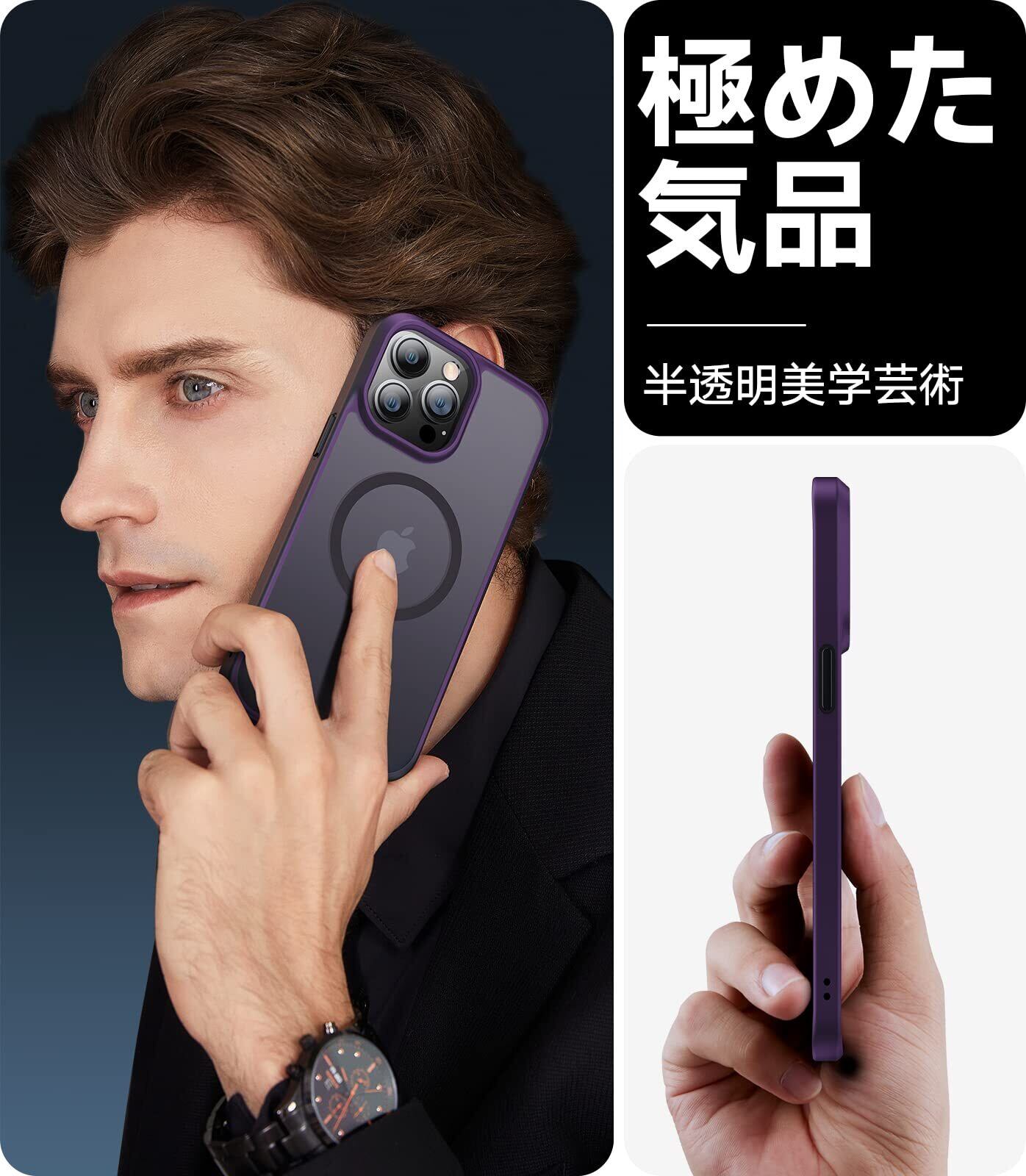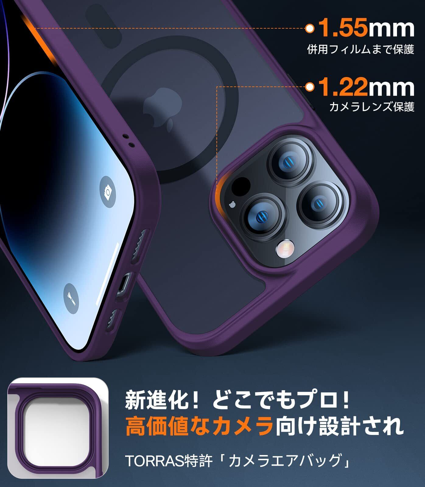 【米軍規格・MagSafe対応】TORRAS iPhone 14 pro 用 ケース 半透明 マグネット搭載 耐衝撃 マット感 黄ばみなし ストラップホール付き マグセーフ対応 ワイアレス充電対応 2023新版 パープル