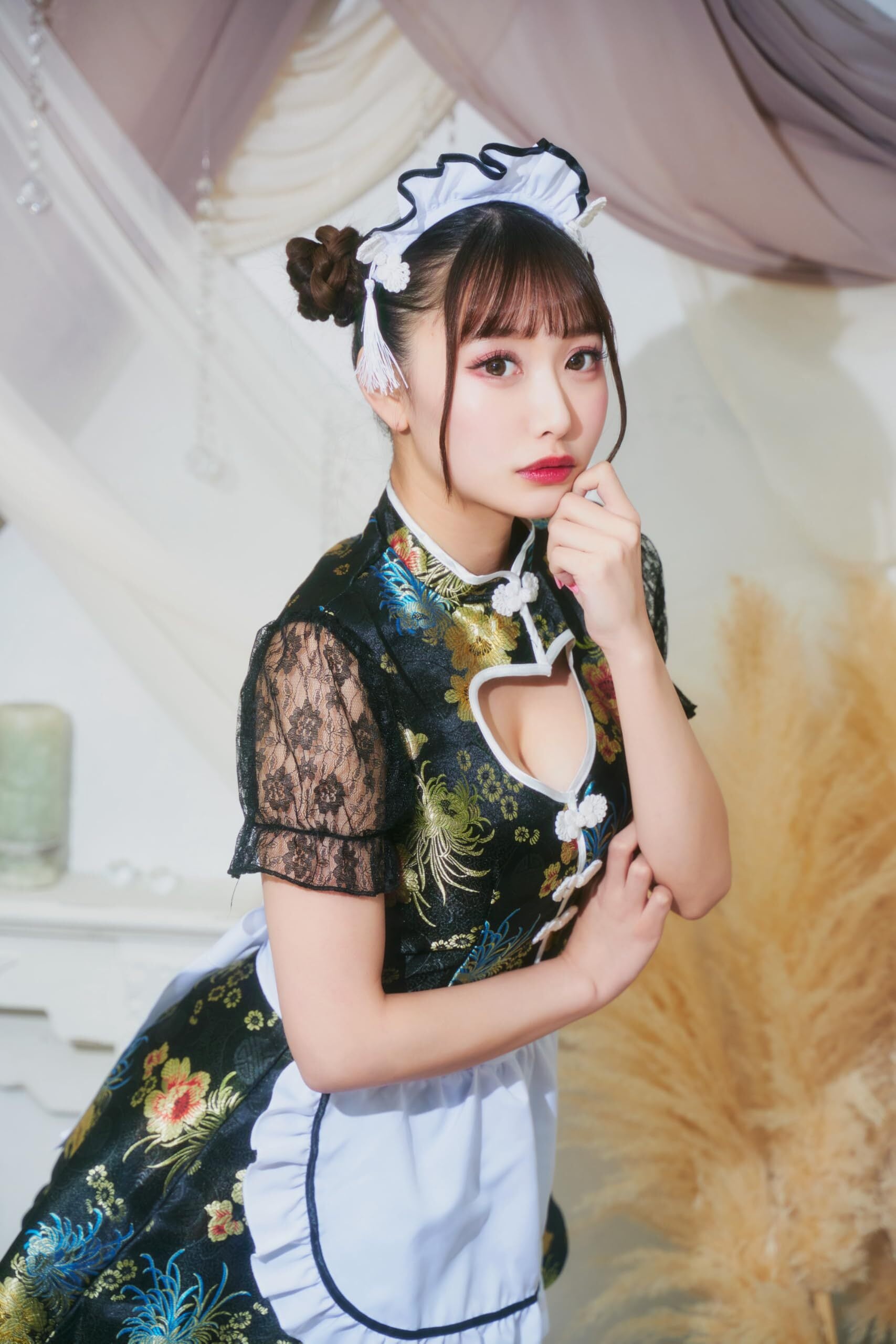 ハート型の胸元開きやフレアスカートが可愛くセクシーなチャイナメイドコスチューム。