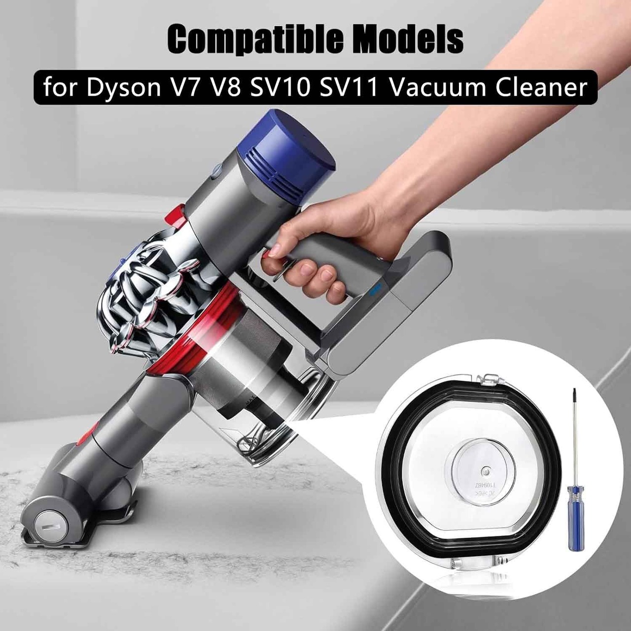 ダイソン V7 V8 掃除機と互換性のあるシールリング付きダストビン蓋キャップ ドライバー付き交換用アクセサリー