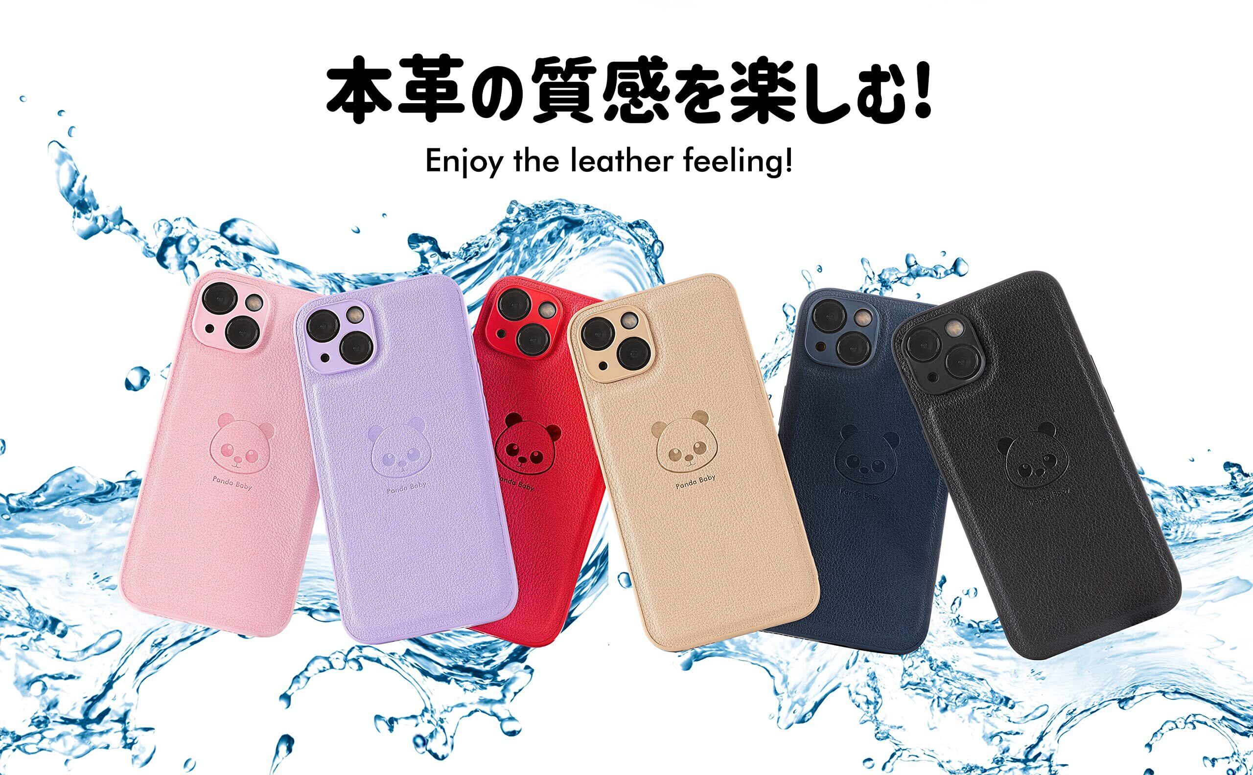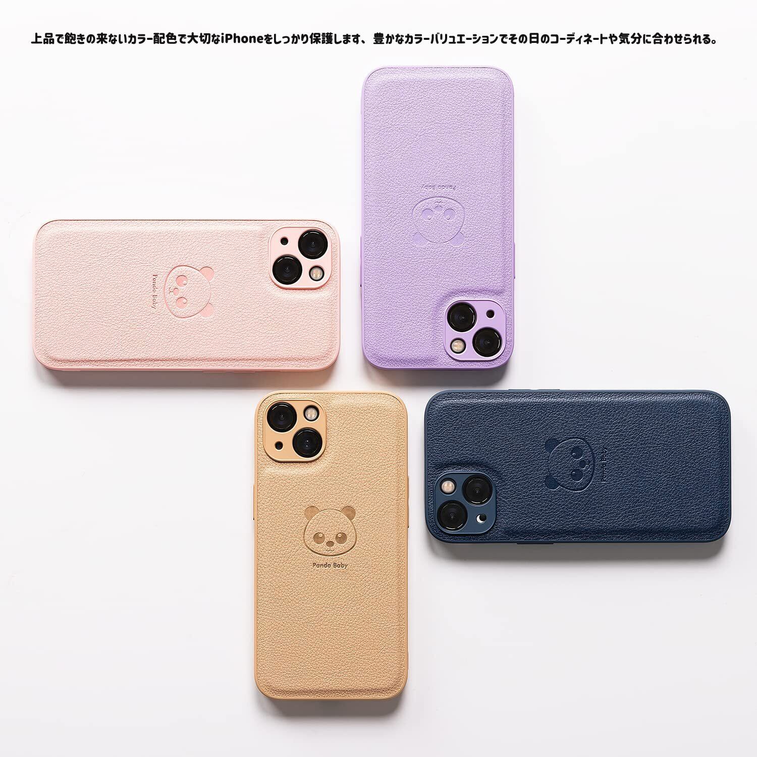 Panda Baby iPhone 14 レザーケース 本革に近い質感 (ピンク)