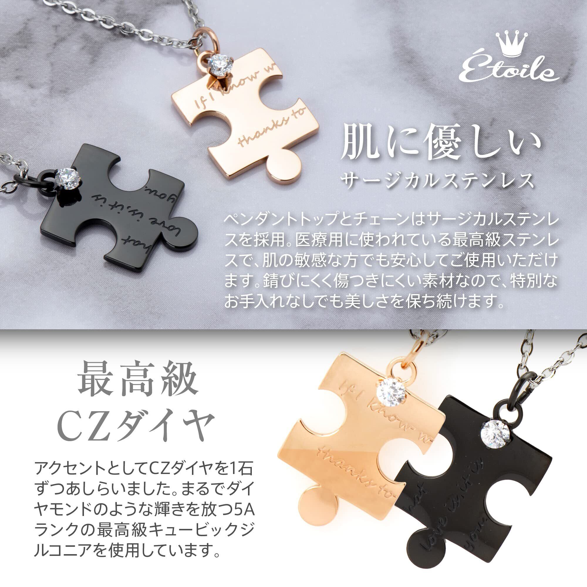 [Étoile] [エトワール] ペアネックレス パズル ネックレス ペアペンダント カップル お揃い 人気 ペア アクセサリー CZダイヤ サージカルステンレス 金属アレルギー対応 誕生日 記念日 プレゼント ジュエリーボックス付き
