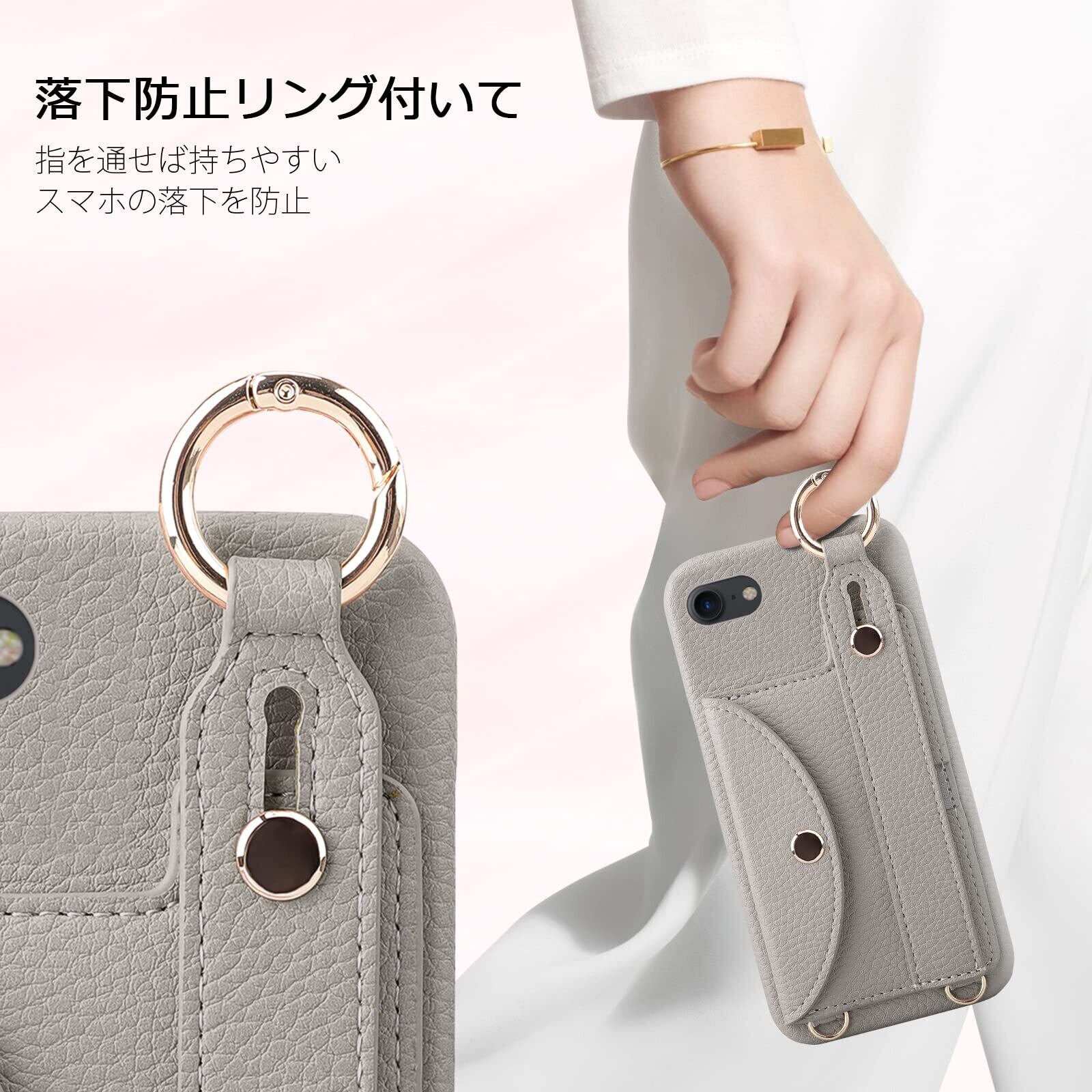 iPhone SE 第三世代(2022)対応 スマホ ケース iPhone 7/8 手帳型カバー 肩掛け 首かけ 斜めがけ ショルダー ケース アイホン SE2 財布型 ケース 保護フィルムプレゼント あいふぉん 6 6s PU皮革カバー 可愛い リング付き 背面 カード収納 アイフォン se3 縄掛け ケース あいほん8 4.7" 女性 携帯 カバー 片手操作 スタンド機能 ハンドヘルド機能 落ち着いた 落下防止 薄型軽量 耐久性 取り外し可能 耐汚れ ノート型 (iPhoneSE3/8/7, 灰)