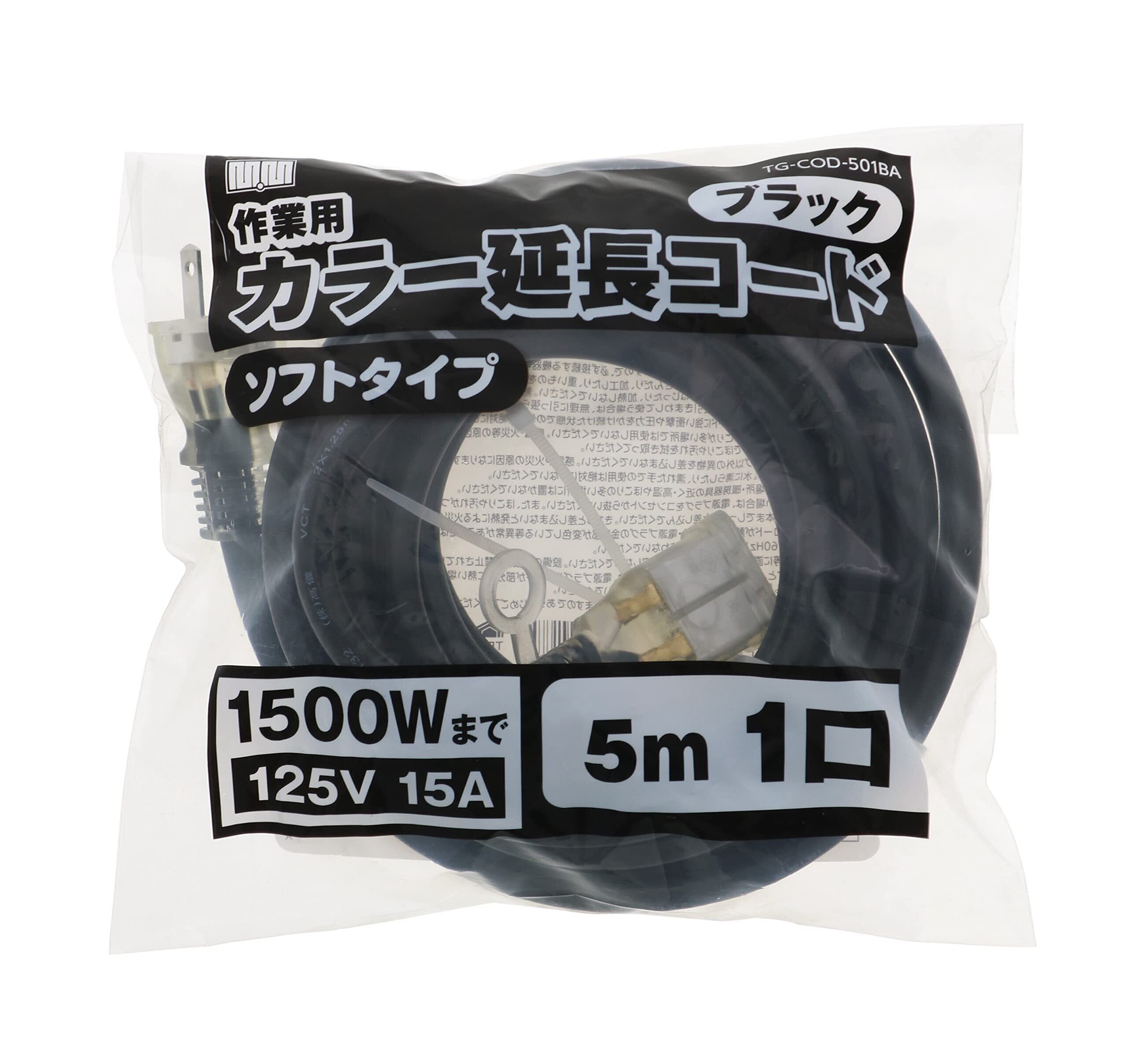 高儀(Takagi) M.M カラー 延長コード 5m 1口 ブラック TG-COD-501BA