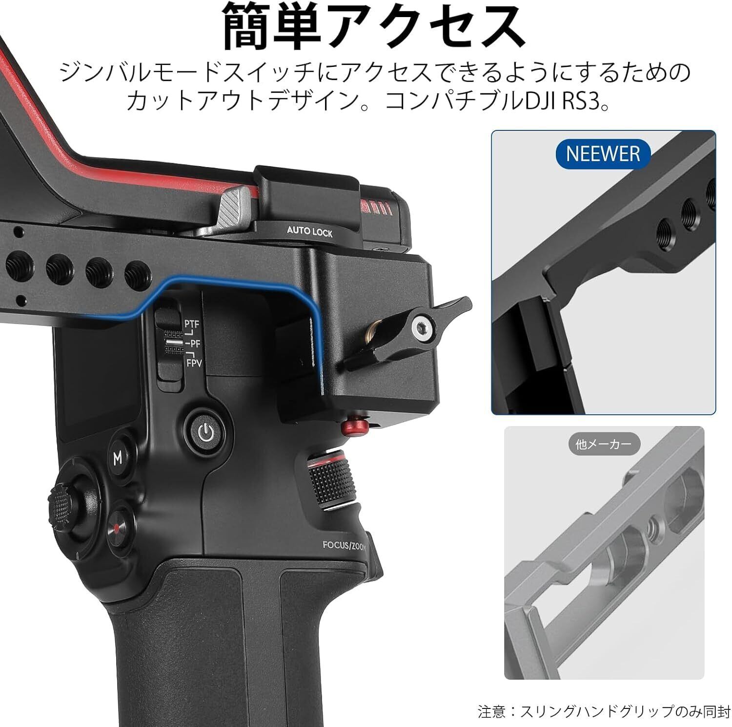 【コンパチブル RS 2 RSC 2 RS 3 RS 3 Pro】アップグレードされたNEEWERスリングハンドルはコンパチブル RS 2 RSC 2 RS 3 RS 3 Proハンドヘルドスタビライザー、最新のRS 3とRS 3 Proを切り替えるために特別に設計されています。ジンバルモード側のキー中空加工で、より使いやすく、より安心になります。ハンドルによりローアングル撮影が容易になり、腕の疲労を軽減します。