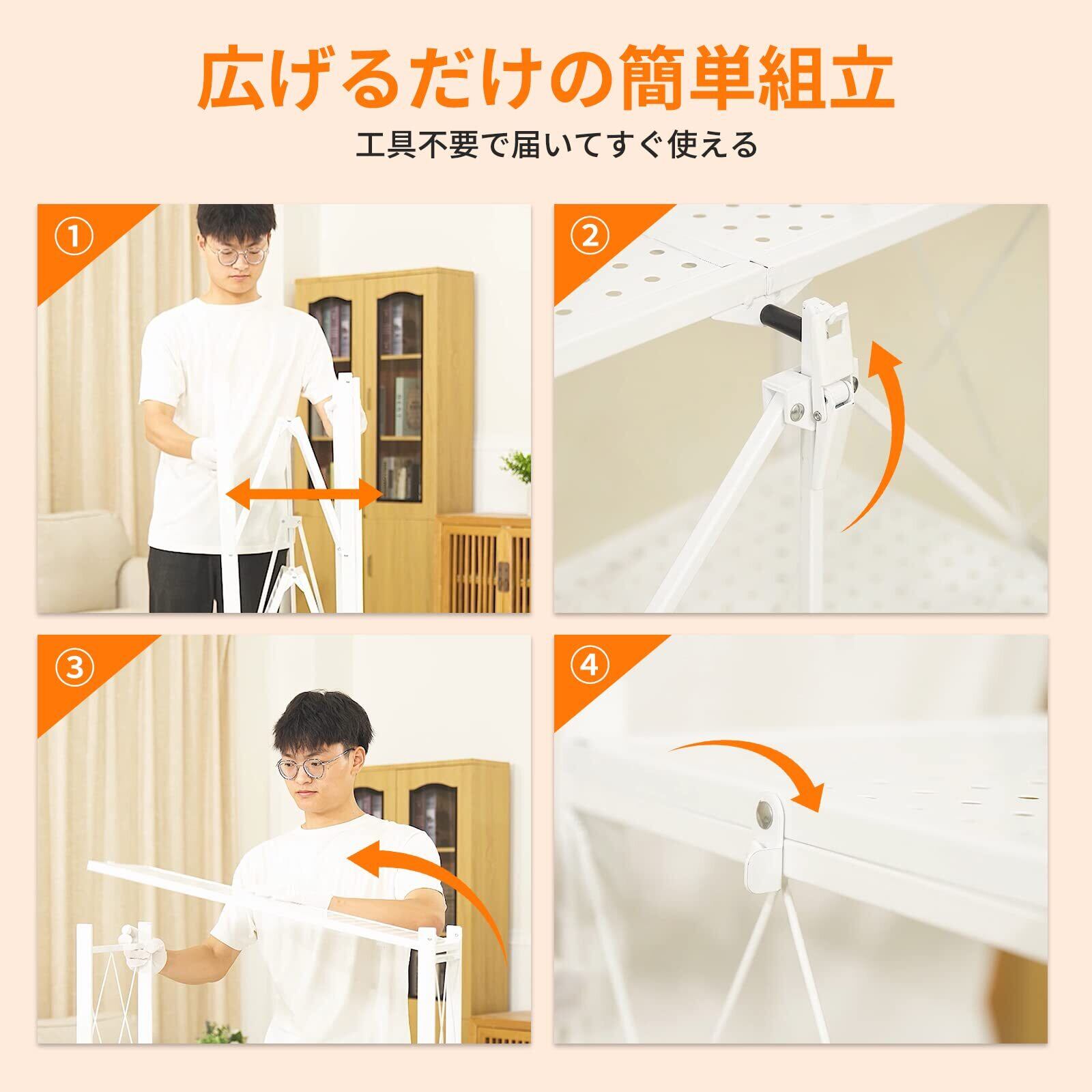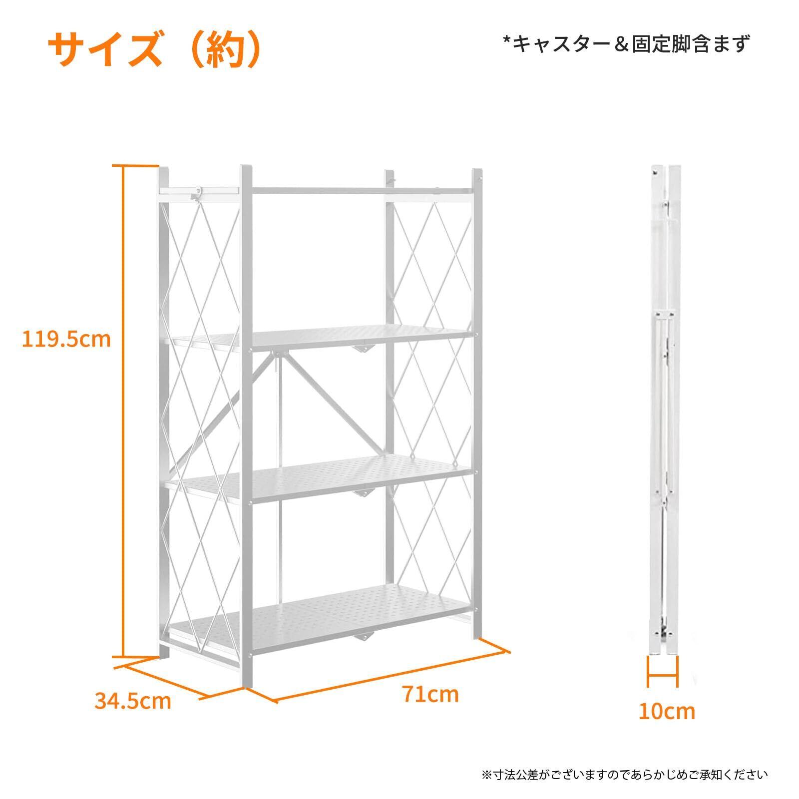 E-WIN 折りたたみラック 4段 【届いてすぐ使える!】【キャスター取付だけの簡単組立】本棚 キッチンラック ランドリー 省スペース 固定脚付属 スリムホワイト 白 X-4-WH【メーカー:1年】