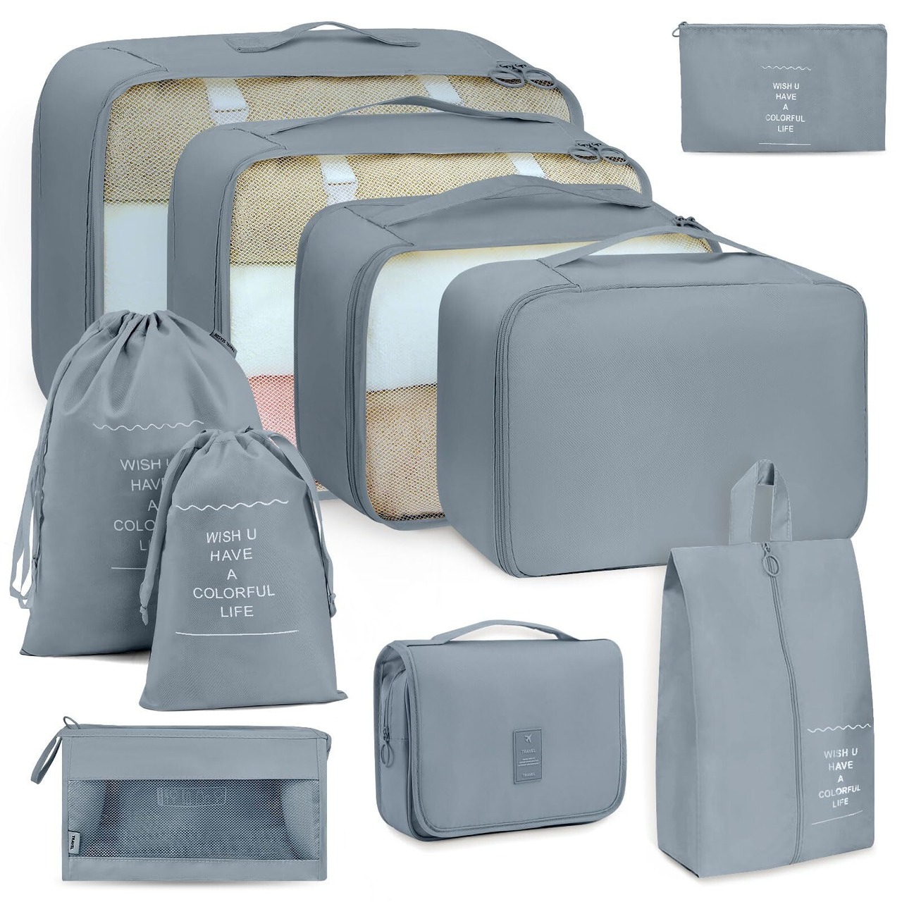 TRMF トラベルポーチ アレンジケース 10点セット パッキングポーチ 洗面用具 旅行用 出張 衣類 整理 便利グッズ 靴用 下着収納 吊り下げ 小物入れ (グレー)