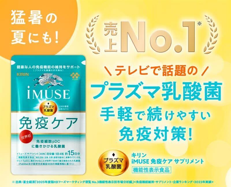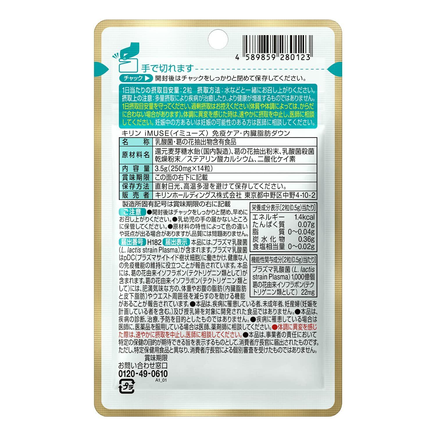 キリン iMUSE イミューズ 免疫ケア・内臓脂肪ダウン [ サプリ 機能性表示食品 プラズマ乳酸菌 免疫 ケア 錠剤 小粒 麒麟 ] 60日分 飲み忘れ防止チェックシート付
