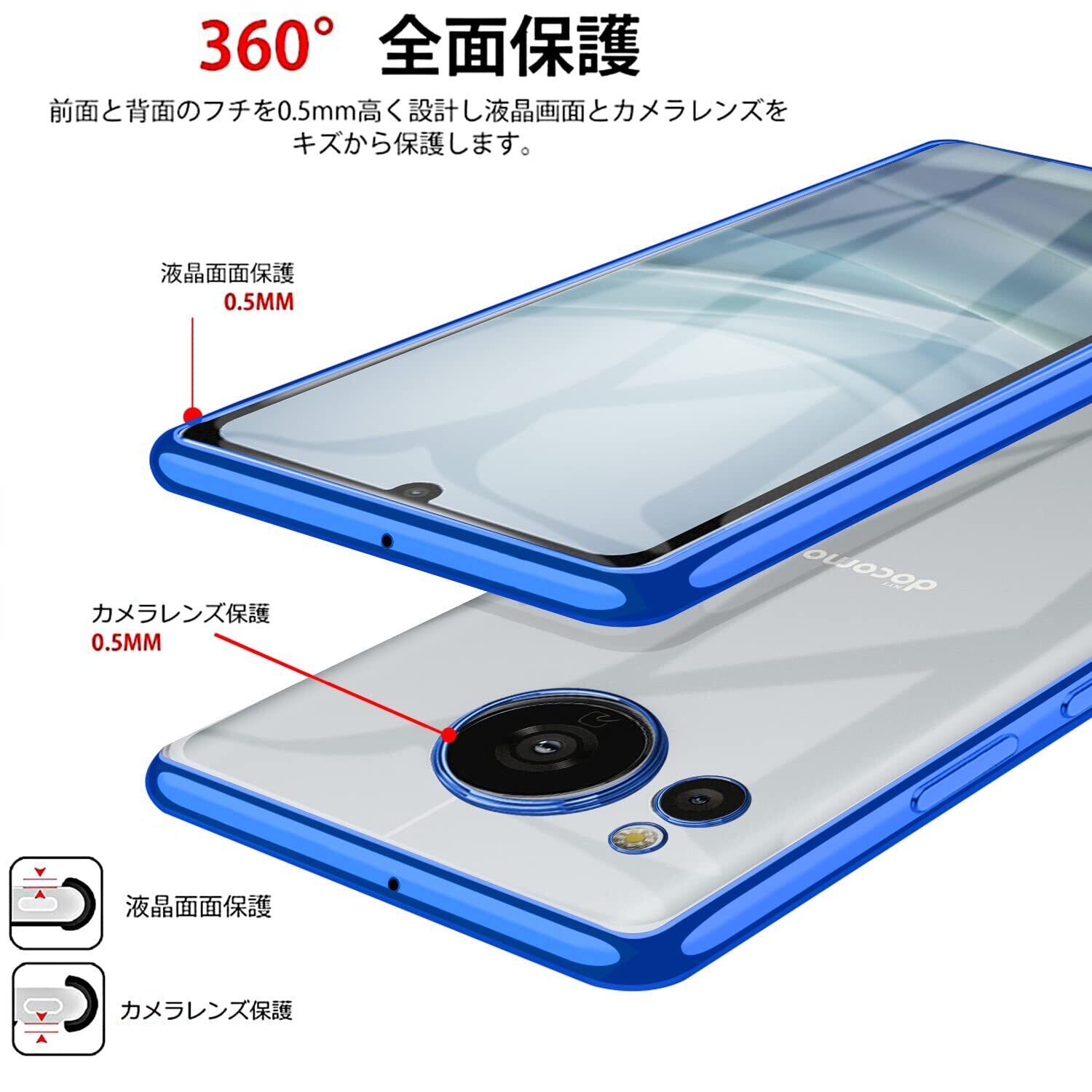 AQUOS sense7 ケース クリア 透明 SH-53C SHG10 カバー スマホケース 薄型 tpu 耐衝撃 ストラップホール スリム ソフト 青 メッキ加工 アクオス センス7 ケース ブルー
