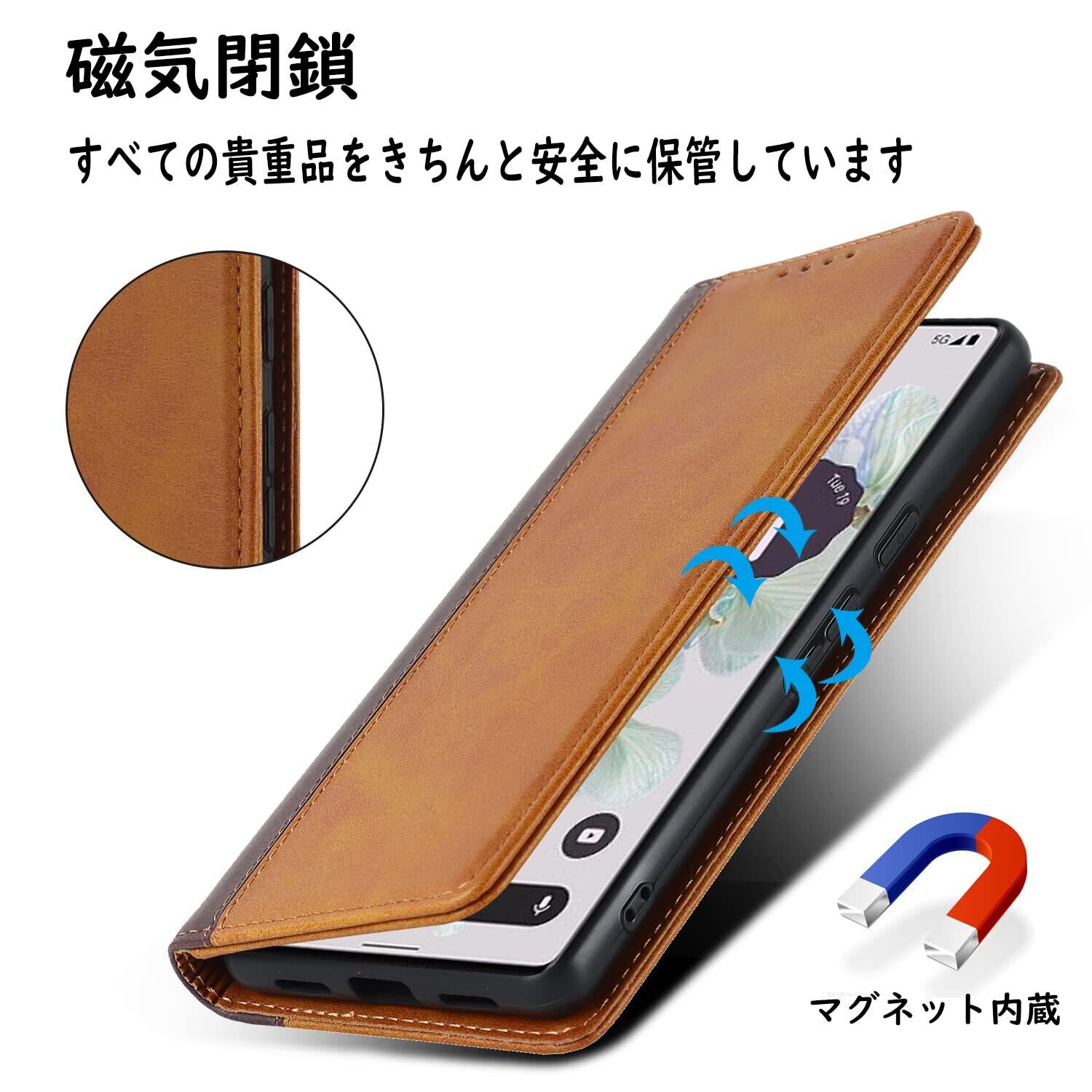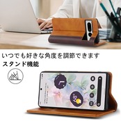 【収納機能】Google Pixel 7 Proケース内側には三つのカード入れとフリーポケットがつき、カード類や紙幣、名刺などが収納できます。カードスロットに5枚のカードを入れると、内蔵マグネットの機能を最大限に発揮し、カードが消磁されるのを防ぐことができます。横置きスタンド機能が付き、横向いて斜めに立てて、自由に角度を調整して、お好みの角度で動画鑑賞や読書などを楽しめます。長時間での新幹線、飛行機の中での暇つぶしに最適です。