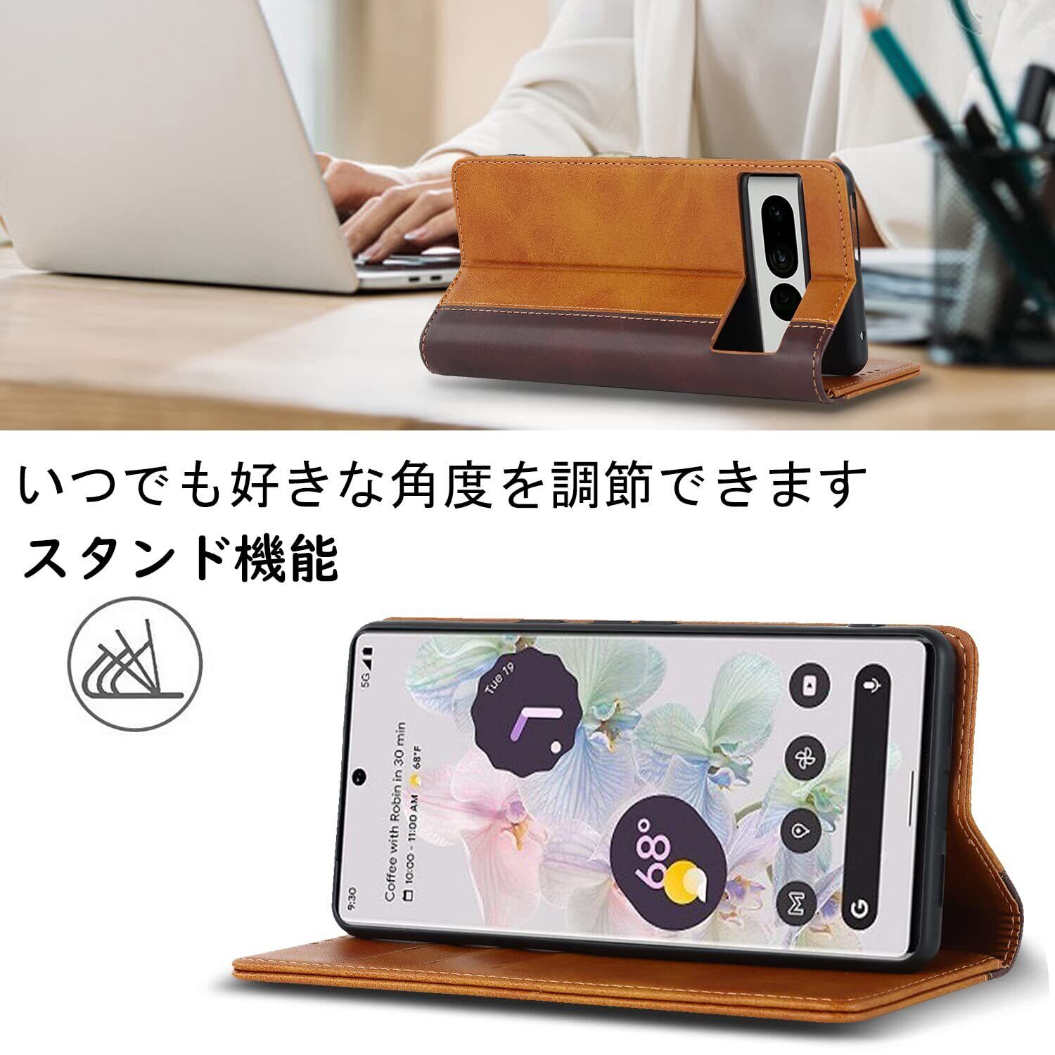 Havaya Google Pixel 7 Pro ケース googleピクセル7プロ ケース pixel 7 pro スマホケース docomo 手帳型 au 耐衝撃 カバー SoftBank マグネット式 カード収納 スタンド機能 レザー -イエロー+ブラウン