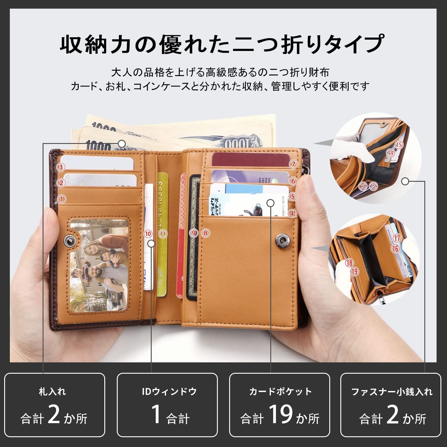 【ポイント1-商品説明】:(カラー4色):ブラック、ネイビー、レッド、オレンジ;(サイズ):約12.2*9.7*2.5cm;(仕様):カード入れx19( IDウィンドウ×1)(フリーポケット ×4)、札入れx2、L字型ファスナー小銭入れ× 1;職人がひとつひとつ丁寧に製作いたしまいしたメンズふたつおり財布が登場。