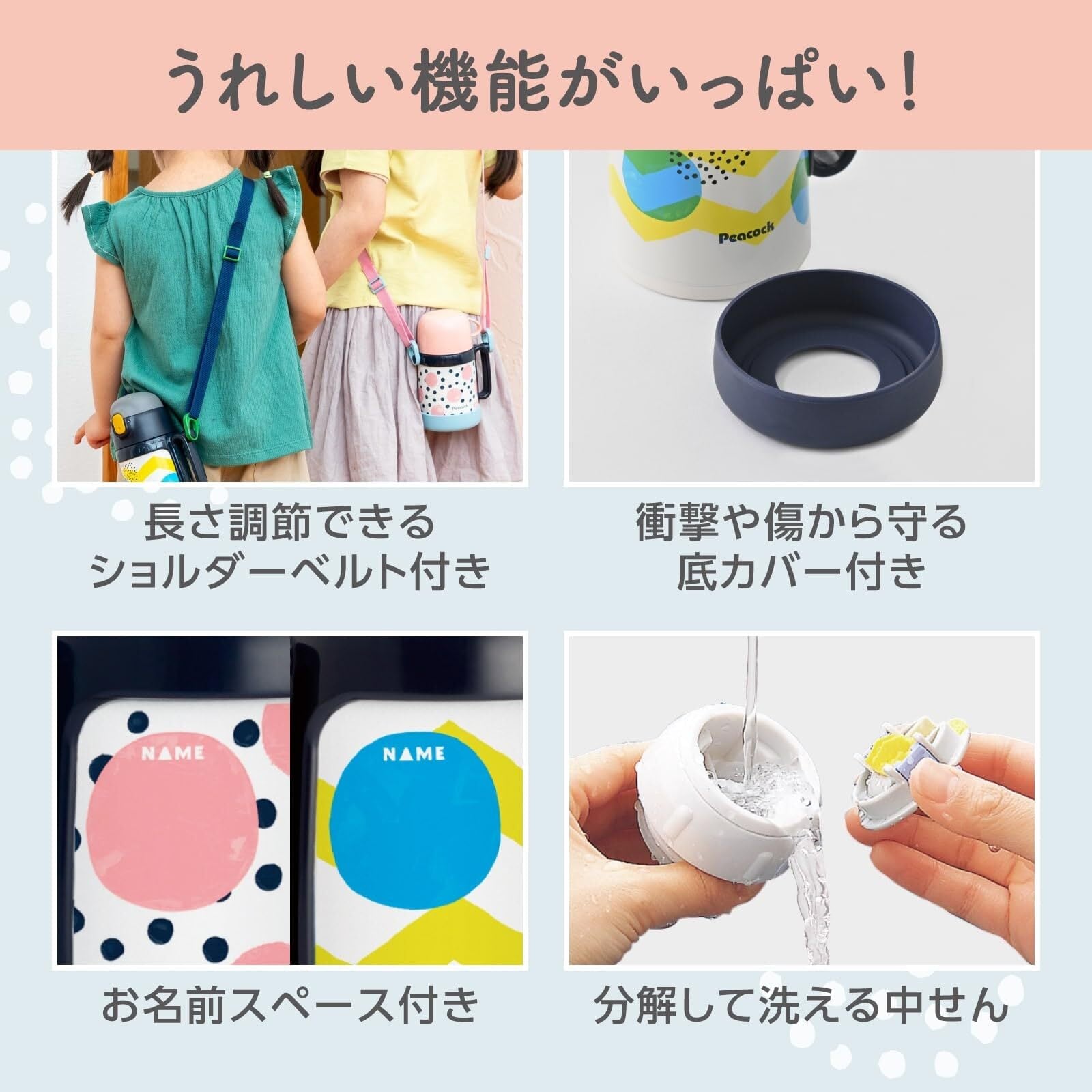 【2wayキッズ水筒】 ピーコック 子供用水筒 400ml WEB限定予備ストロー付 ブルーグレー/ストロー コップ 2way キッズボトル 水筒 幼稚園 通園 通学 ワンタッチ ASK-W40P