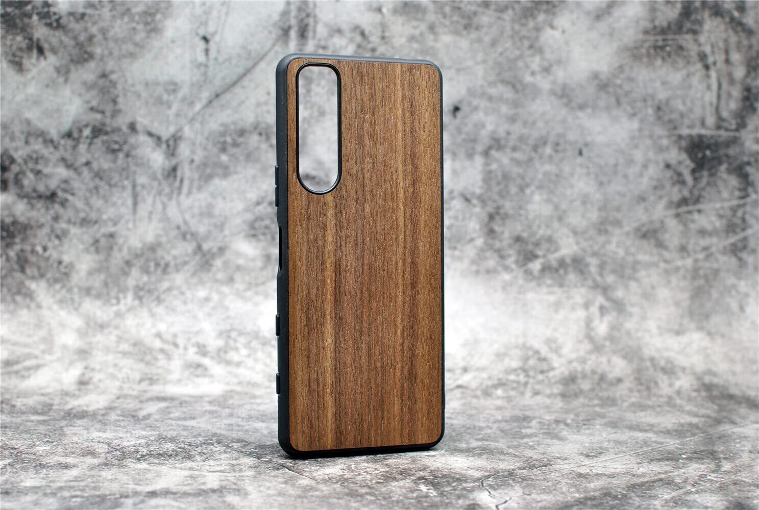 MQman Xperia5iv SO-54C SOG09 ケース 木製カバー 胡桃の木 原木 素材 エクスペリア天然木 耐衝撃 ソフト クルミ ワイヤレス充電対応 (Xperia 5 IV)