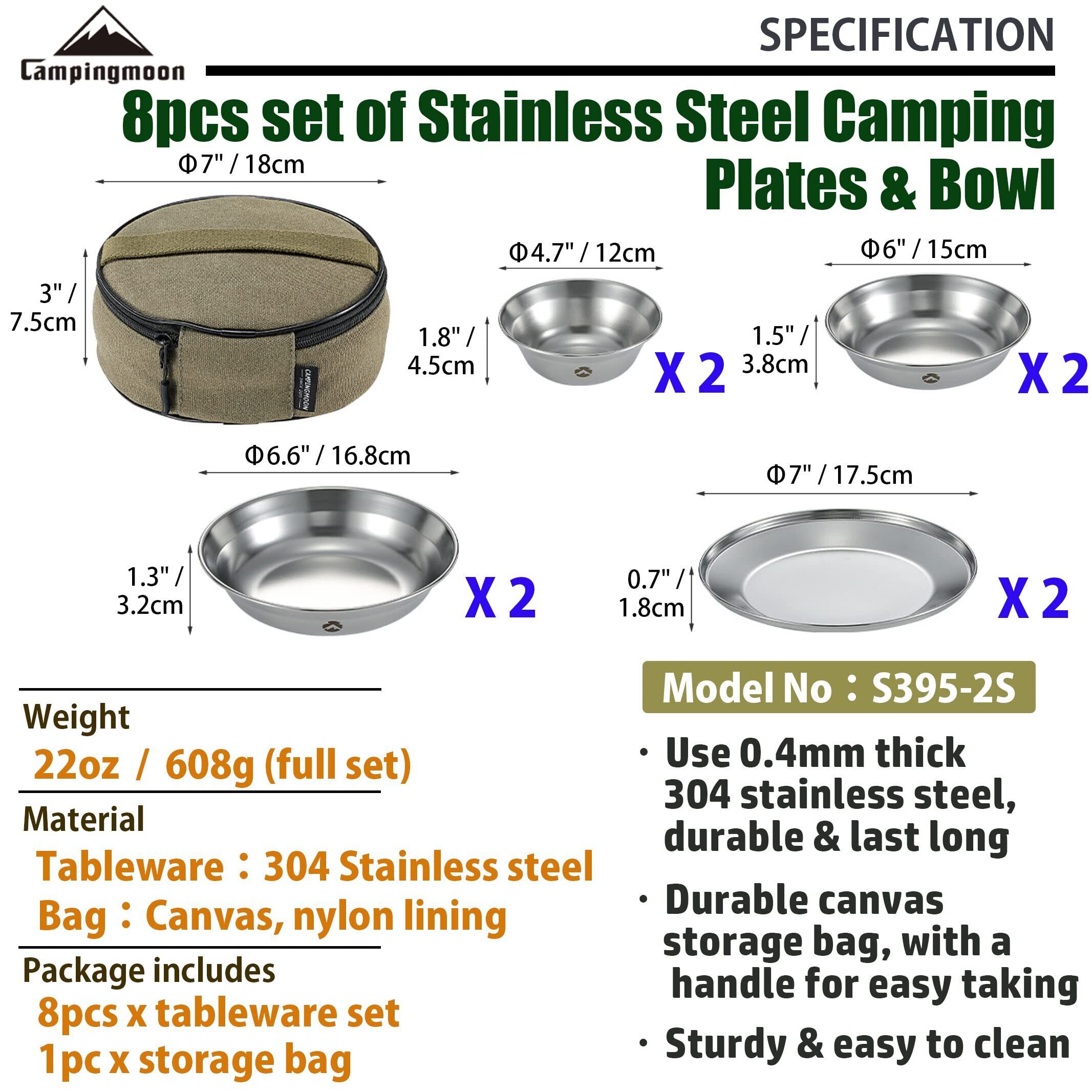 キャンピングムーン(CAMPING MOON) テーブルウェア キャンプ プレート ステンレス 食器 セット 帆布ケース付き S395