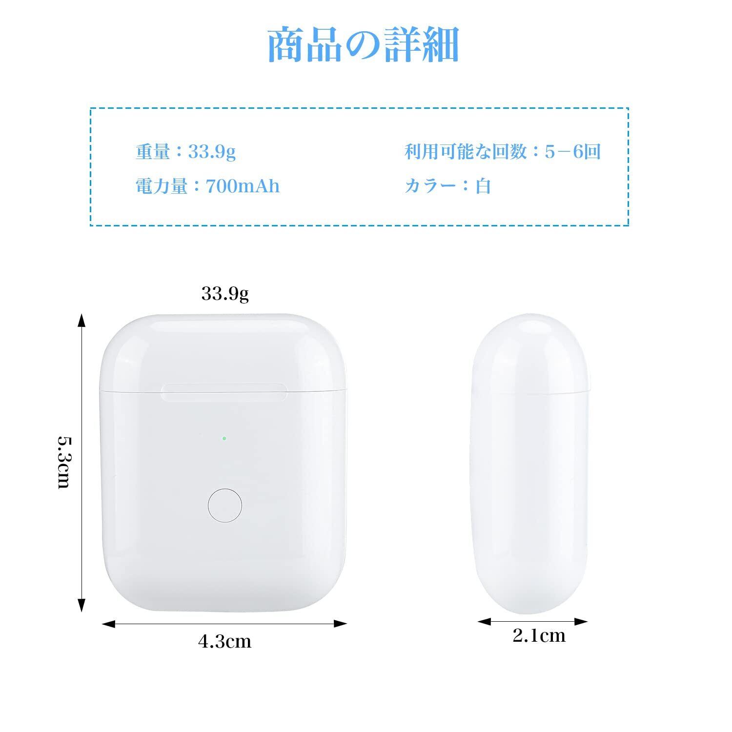 【ワイヤレス充電可能】Airpods1&2との交換性が抜群、充電方法はケーブル充電以外、ワイヤレス充電機能も優秀、ケーブルを抜き差ししなくても充電できます、非常に便利です。
