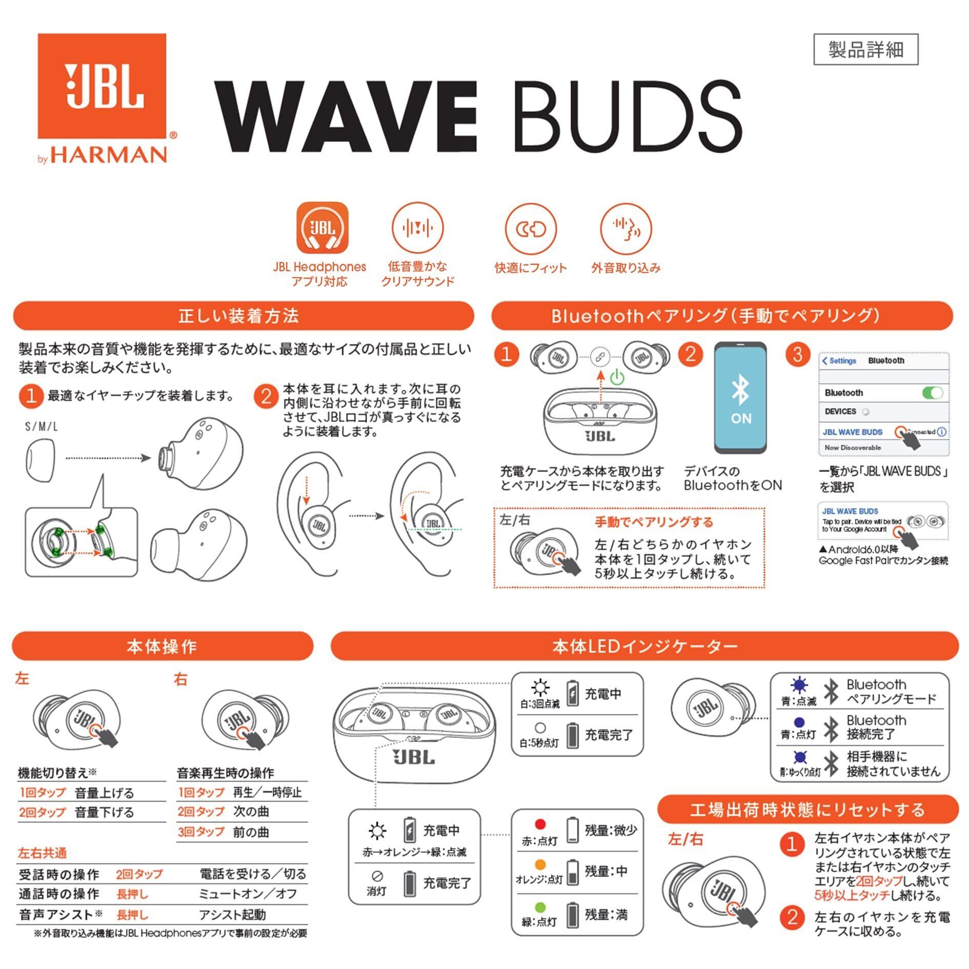 JBL WAVE BUDS 完全ワイヤレスイヤホン Bluetooth/IP54防水防塵/アプリ対応USBタイプC/ベージュ JBLWBUDSBEG 小
