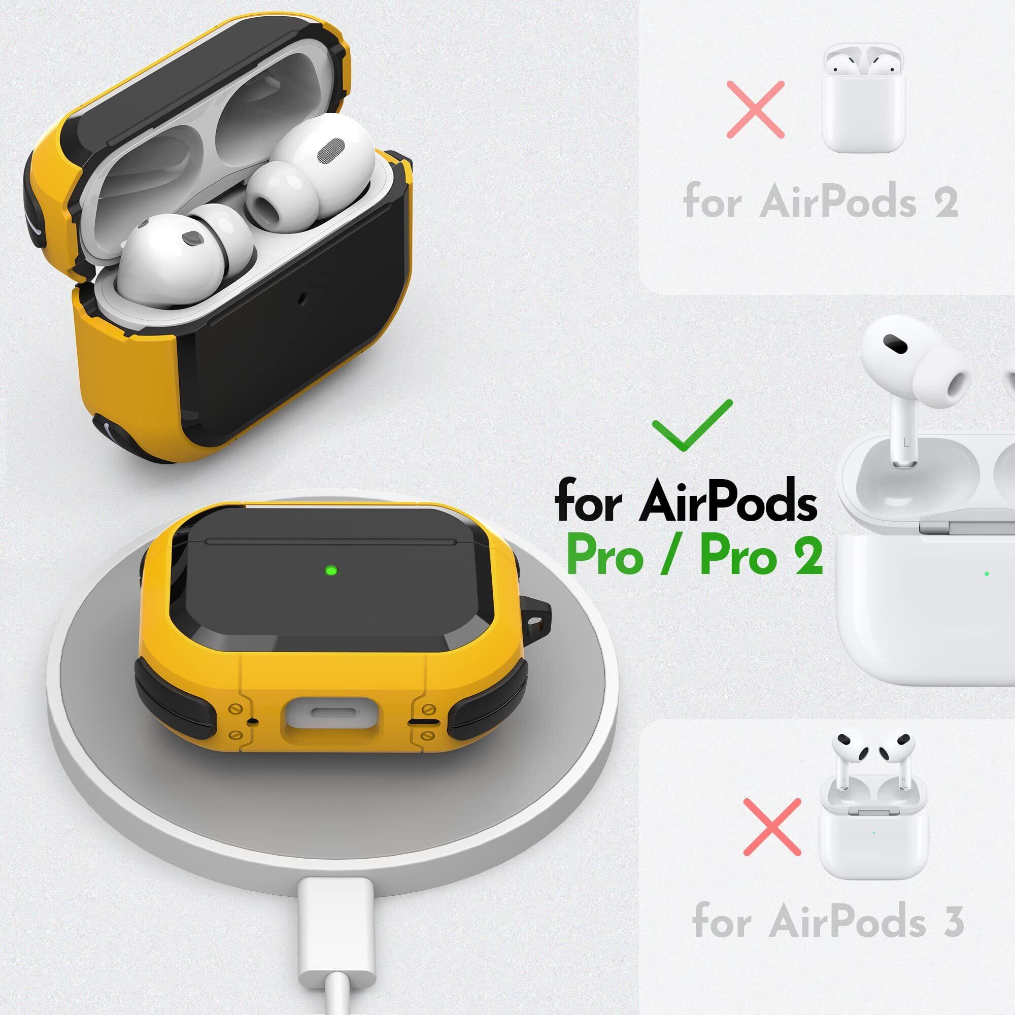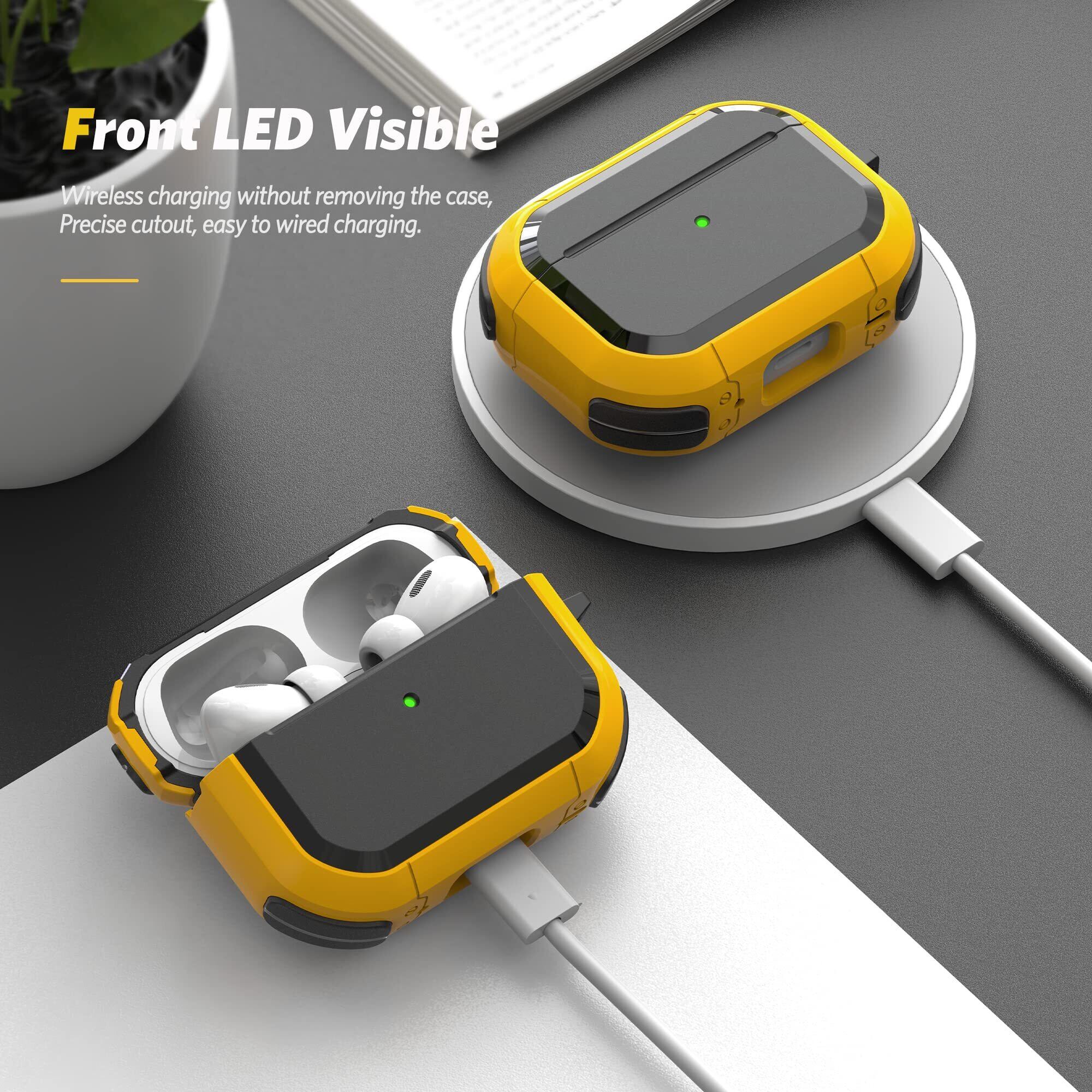 SURPHY AirPods Pro 第2世代 ケース ハードTPU 衝撃吸収 LED可視 分離式 ワイヤレス充電対応 ストラップとカラビナ付き (イエロー)