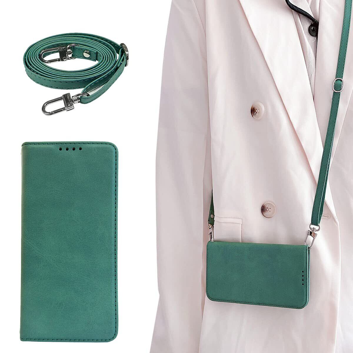 Xperia 5 III ケース 手帳型 高質PUレザー Sony Xperia 5 III カバー SO-53B ケース エクスペリア5 iii ケース SOG05 携帯カバー 気質 斜めショルダーストラップ付き(長さ調整可能)マグネット内蔵 自吸式開閉 カード収納 スタンド機能 肩掛け 便利 財布型 軽量 防水 耐衝撃 全面保護 携帯ケース(ライトグリーン)