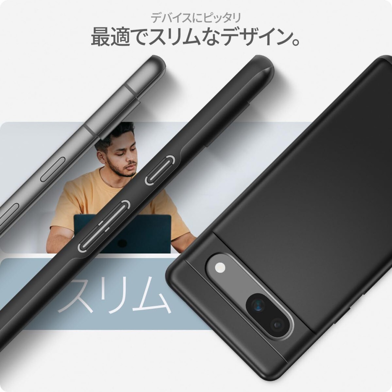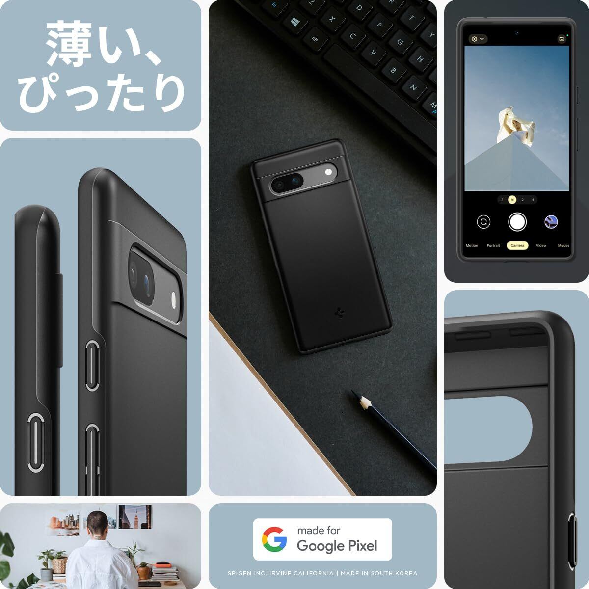 Spigen Google Pixel 7a ケース 薄型 耐衝撃 軽量 さらさら 米軍MIL規格取得 2重構造 レンズ保護 指紋防止 擦り傷防止 マット仕上げ ワイヤレス充電対応 シン・フィット ACS05814(ブラック)