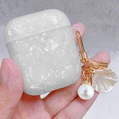 FINON airPods ケース 第1世代 / 第2世代 適用 ケース 可愛い airpods 1 ケース airpods 2 ケース カラビナ ストラップ キラキラ おしゃれ (ホワイト)