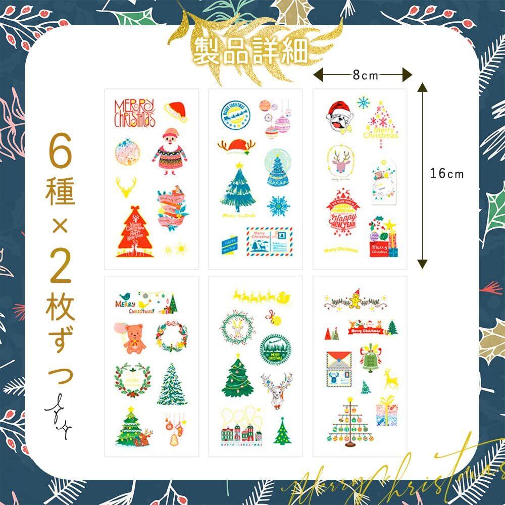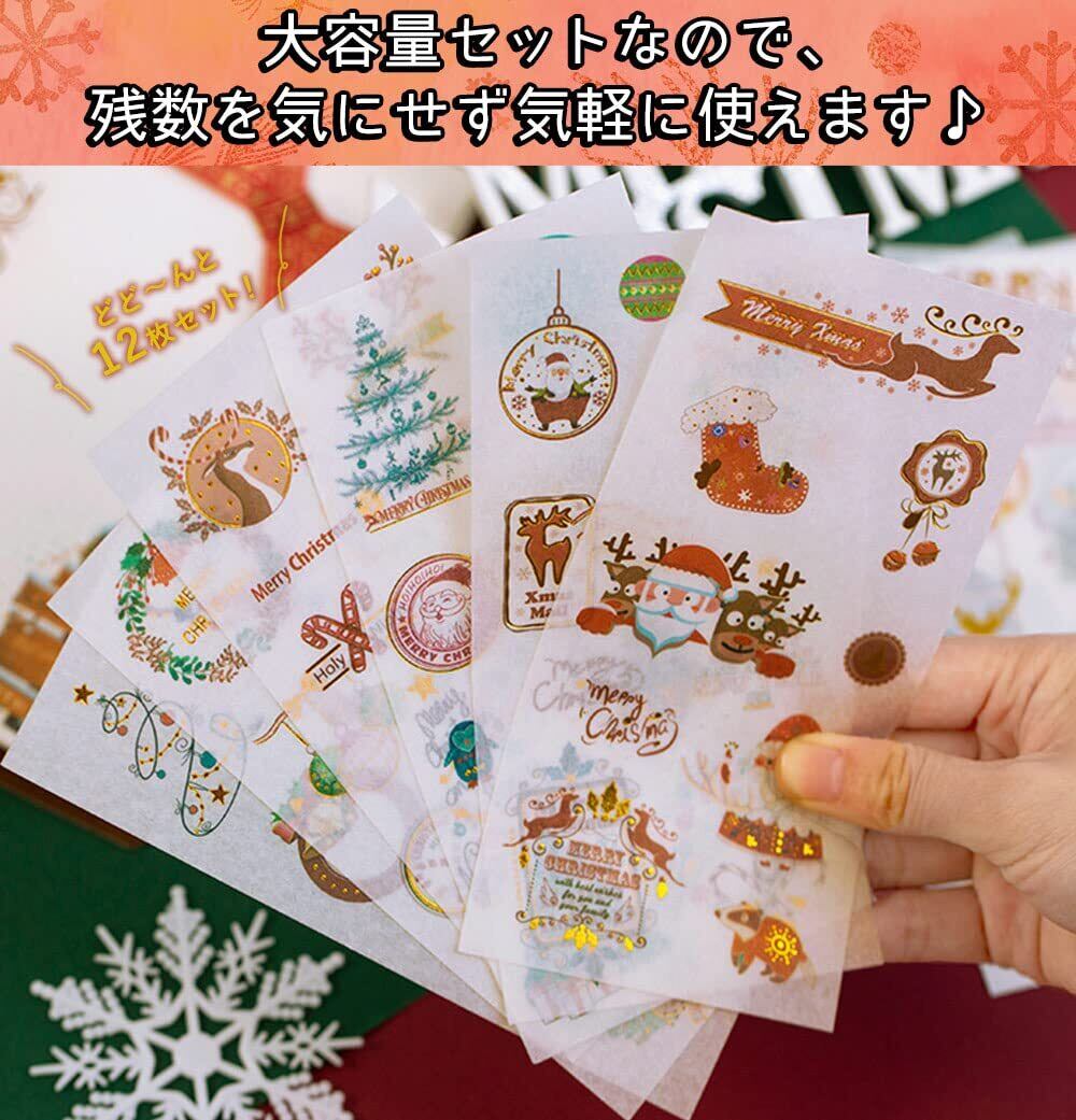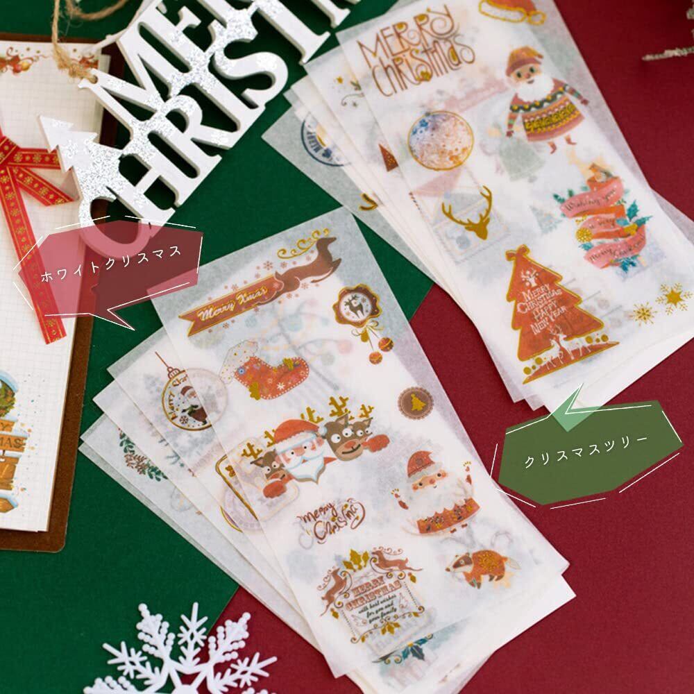 moin moin シール メリー クリスマス ステッカー 12枚セット きらきら 和紙 水彩 ツリー サンタ ベル リース/スケジュール 手帳 アルバム デコ 手紙 カレンダー ご褒美 2212xsl217