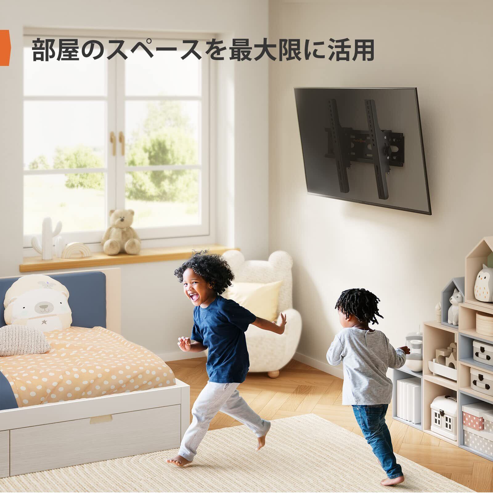 【しっかり支える頑丈設計】本tv壁掛け金具は、高耐荷重設計に加え、厚みのある高品質スチール素材を使用し、実際に製品耐久性を証明するため4倍負荷テストをクリアしています。強度と安定性に優れ、長期間安心してご使用いただけます。お子様やペットがいるご家庭でも、高い位置にテレビを設置することで、画面に触れて倒れる心配をしっかり防止します。