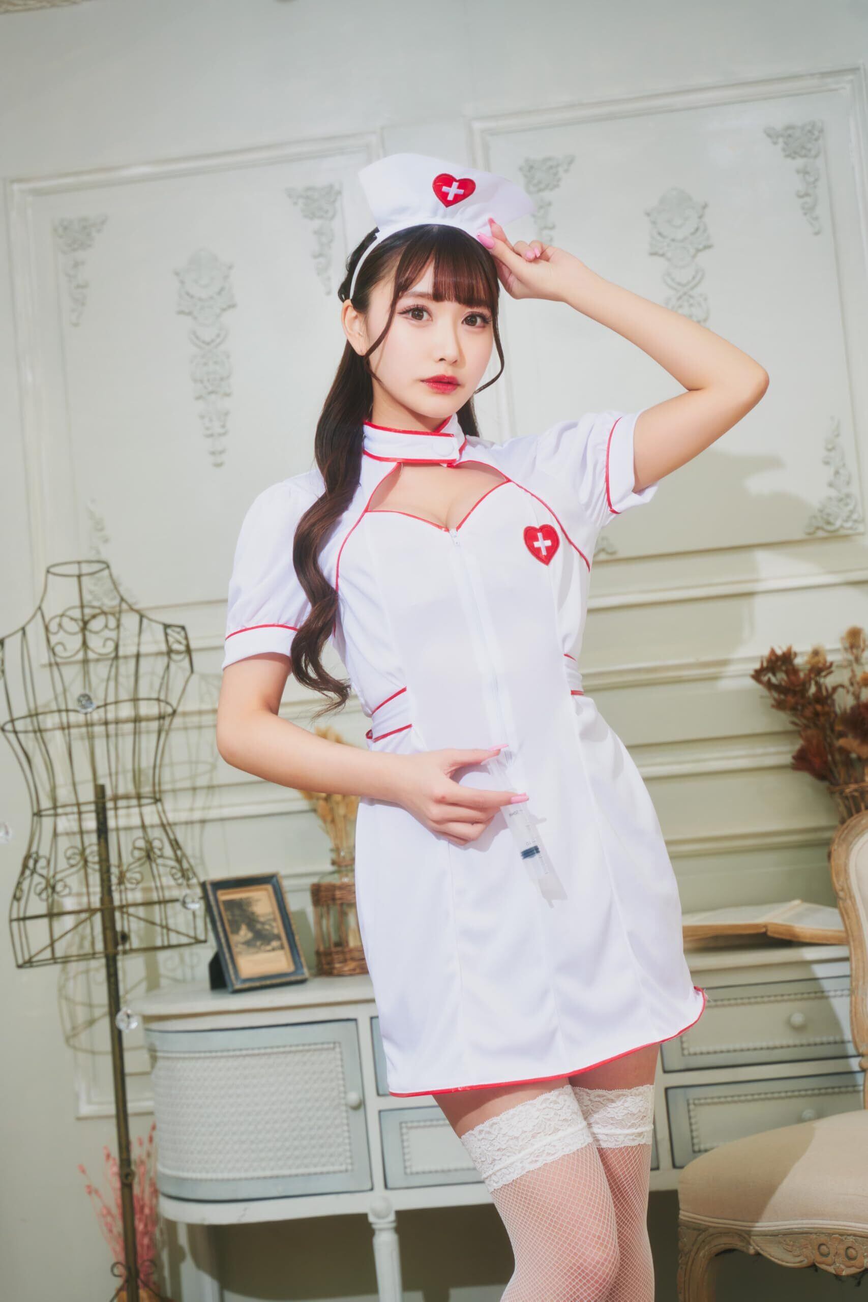 セクシーな胸元開きのデザインと、ストレッチ素材が着心地の良いナースコスチューム。