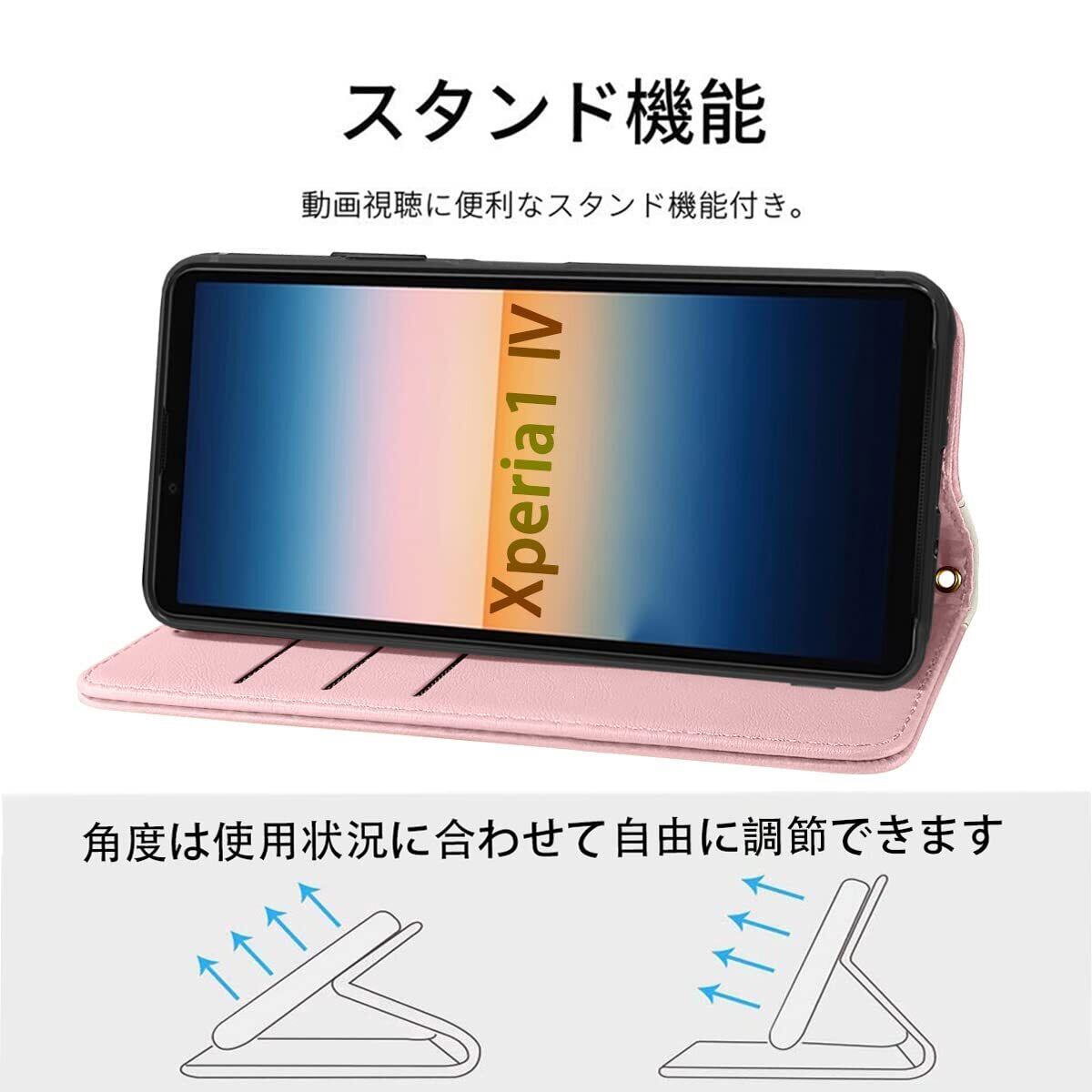 Xperia 1 IV ケース 手帳型 高質PUレザー Xperia 1 IV カバー SO-51C ケース 携帯カバー SOG06 ケース 肌感のよ 二色組合せ 耐衝撃 肩掛け 首かけ 斜めがけ ショルダー ケース 皮革 耐汚れ 内蔵マグネット開閉式 スマホケース おしゃれ カードポケット スタンド機能 人気 財布型(ピンク+ホワイト)