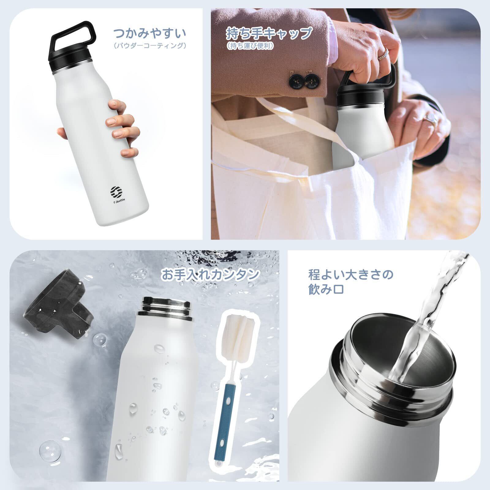 FJbottle 水筒 1.2リットル 真空断熱 保温保冷 ステンレスボトル 直飲み シンプル おしゃれ 軽量 魔法瓶 職場 通勤 トレッキング 部活 外仕事 ゴルフ ホットヨガ 水分補給 洗浄用スポンジ付き 男の子 女の子 大人 子供 ホワイト
