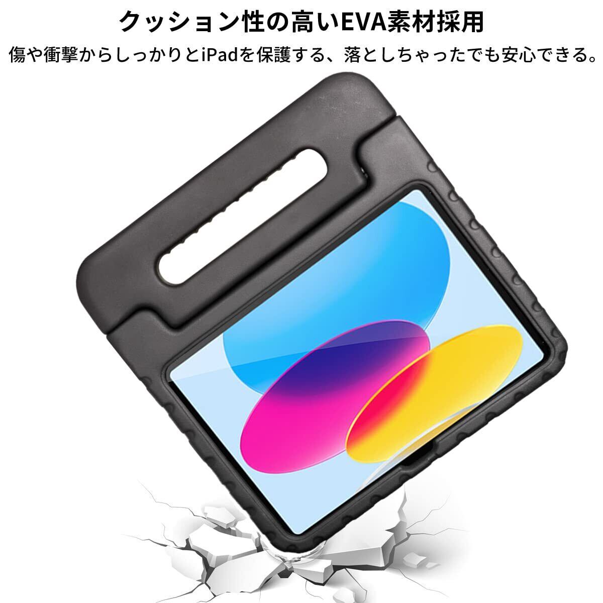 ACE GO iPad 10世代 2022 10.9インチ ケース A2696 A2757 A2777 耐衝撃 軽量 スタンド機能 EVA 子ども用 ペンシル収納 ハンドル付き iPad 10.9 第10世代 カバー (ブラック)