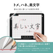 【文字用しっかりタイプの特徴】:分厚いメモ帳や学習帳のよな書き心地のフィルムです。筆圧強め、ミリペンや先の丸い鉛筆で、トメ、ハネなどを意識して真剣に文字を書きたい方に。【他タイプとの違い】:弱めの筆圧でさらさらと軽やかに文字を書きたい方は、文字用さらさらタイプをご検討ください。