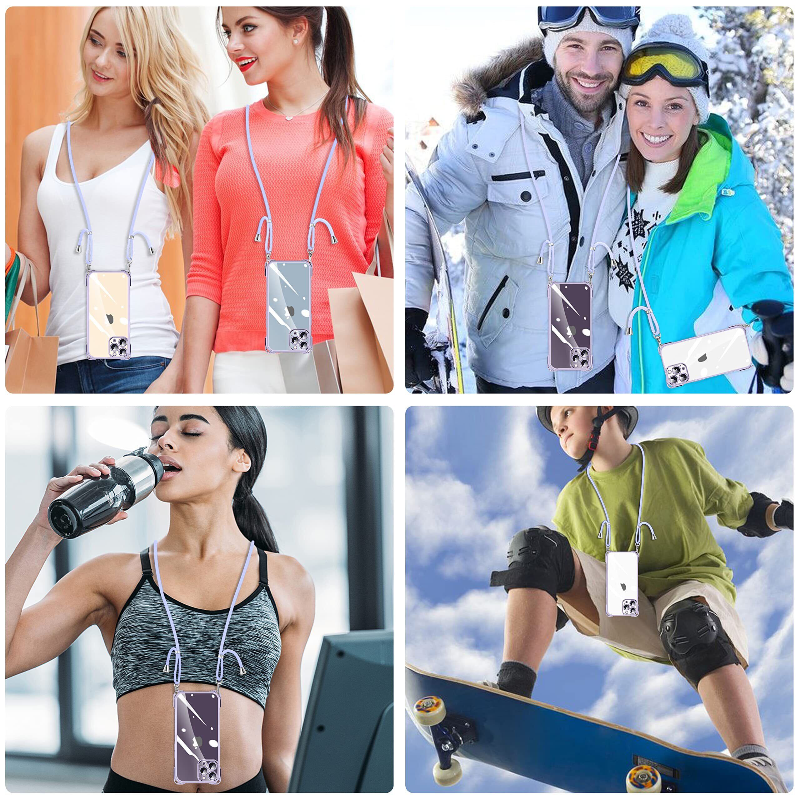 iPhone 14 Pro Max 用 ケース クリア ショルダー iPhone14pro max 用 スマホケース アイフォン14ProMax カバー 肩掛け 斜めかけ 縄掛けケース 透明 薄型 軽量 TPU 携帯ケース 紐付き 斜めがけ 織りストラップ付き ネックストラップ ショルダー ケース 縦/横 2WAY 長さ調整可能 取り外し可能 落下防止 紛失防止 ワイヤレス充電対応 (パープル)
