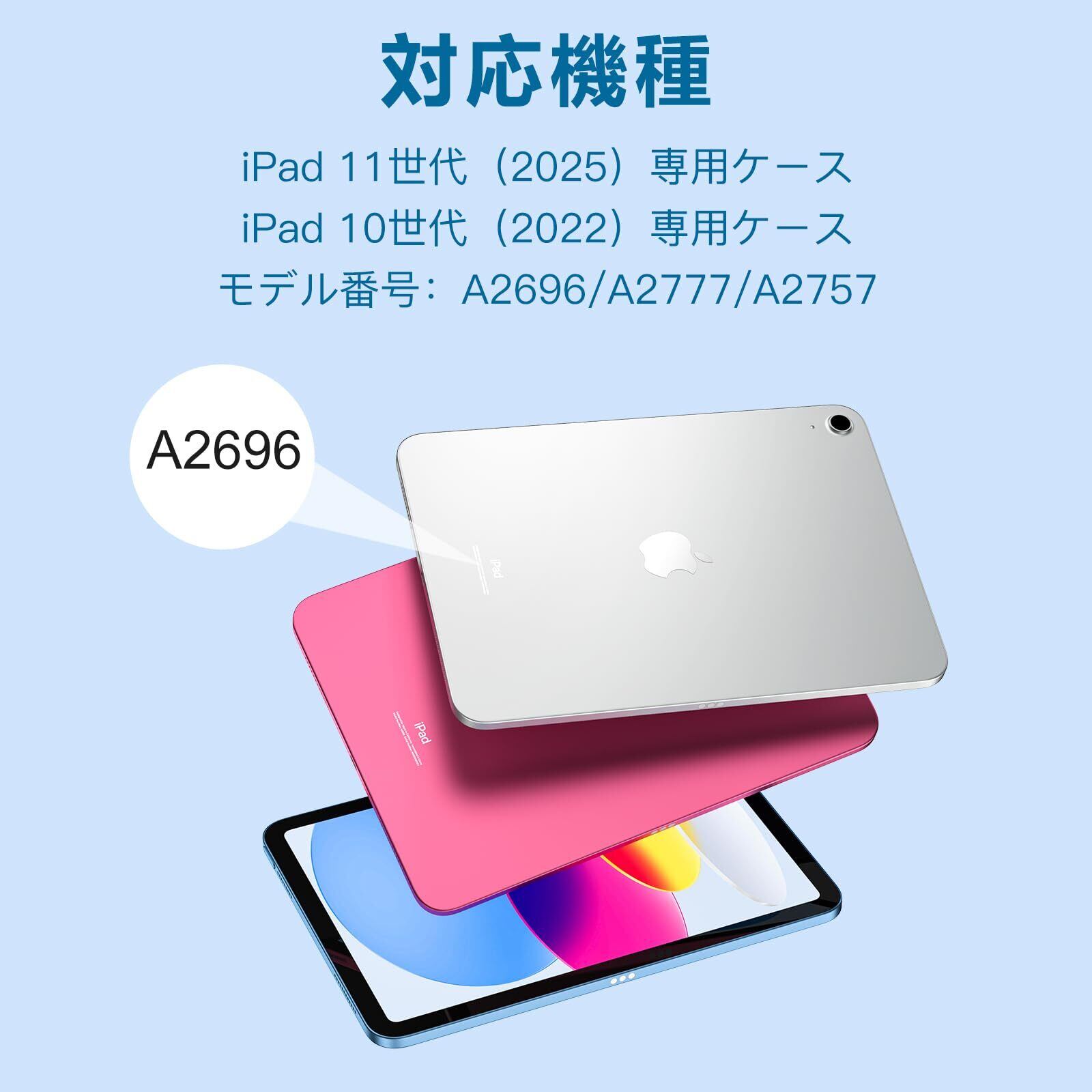 【対応機種】対応iPad 11/10世代 専用 ケースです。対応iPad (A16) 2025発売 A3354/A3355/A3356,対応iPad (10世代) 2022発売 A2696/A2757/A2777。ご注意:ご購入する時に手元のデバイスの裏面に記載しているモデル番号をご確認ください)