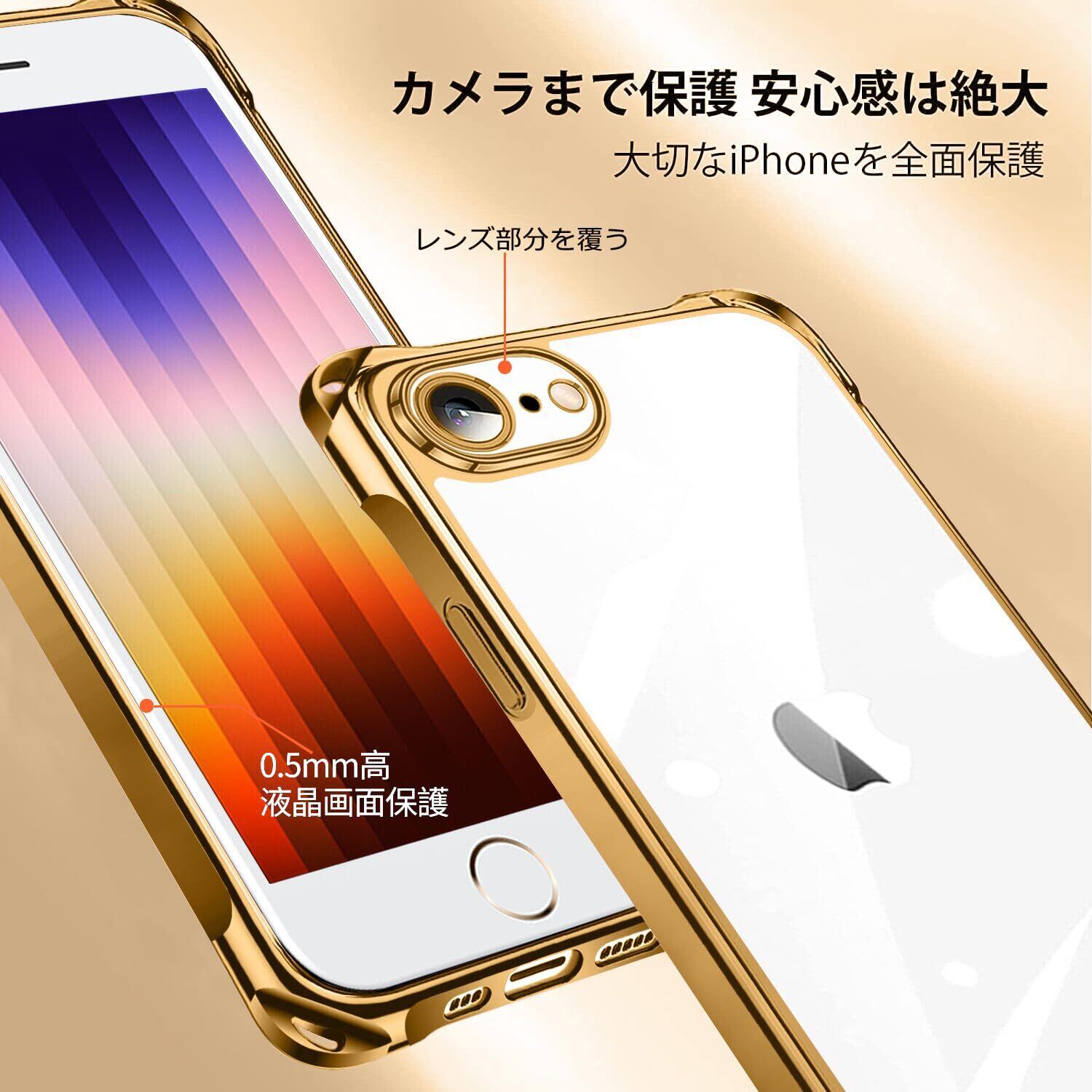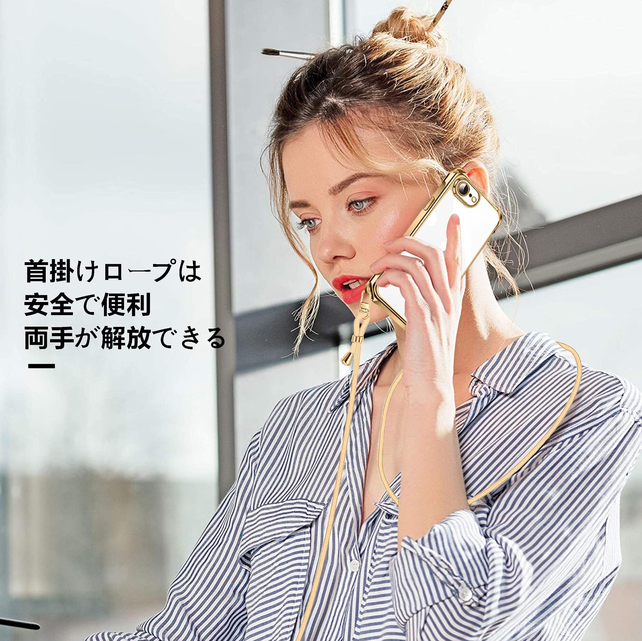 iPhone SE 第3/2世代 7 8 用 ケース クリア ショルダー iphonese 7 8 用 スマホケース アイフォン7 8 se2 se3 カバー 肩掛け 斜めかけ 縄掛けケース 透明 TPU 薄型 軽量 耐衝撃 紐付き 斜めがけ 織りストラップ付き ネックストラップ ショルダー ケース 縦/横 2WAY 長さ調整可能 取り外し可能 落下防止 紛失防止 ワイヤレス充電対応 (ゴールド)