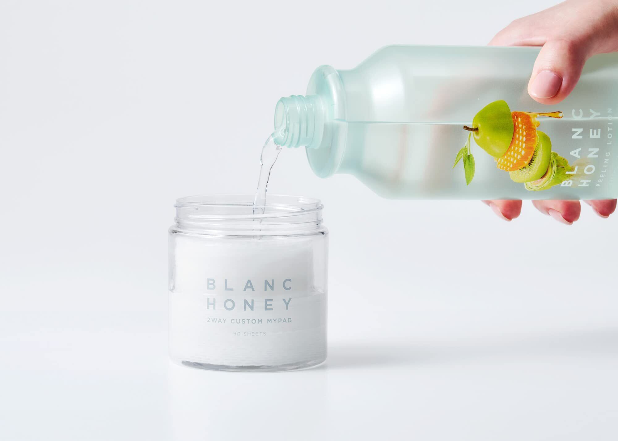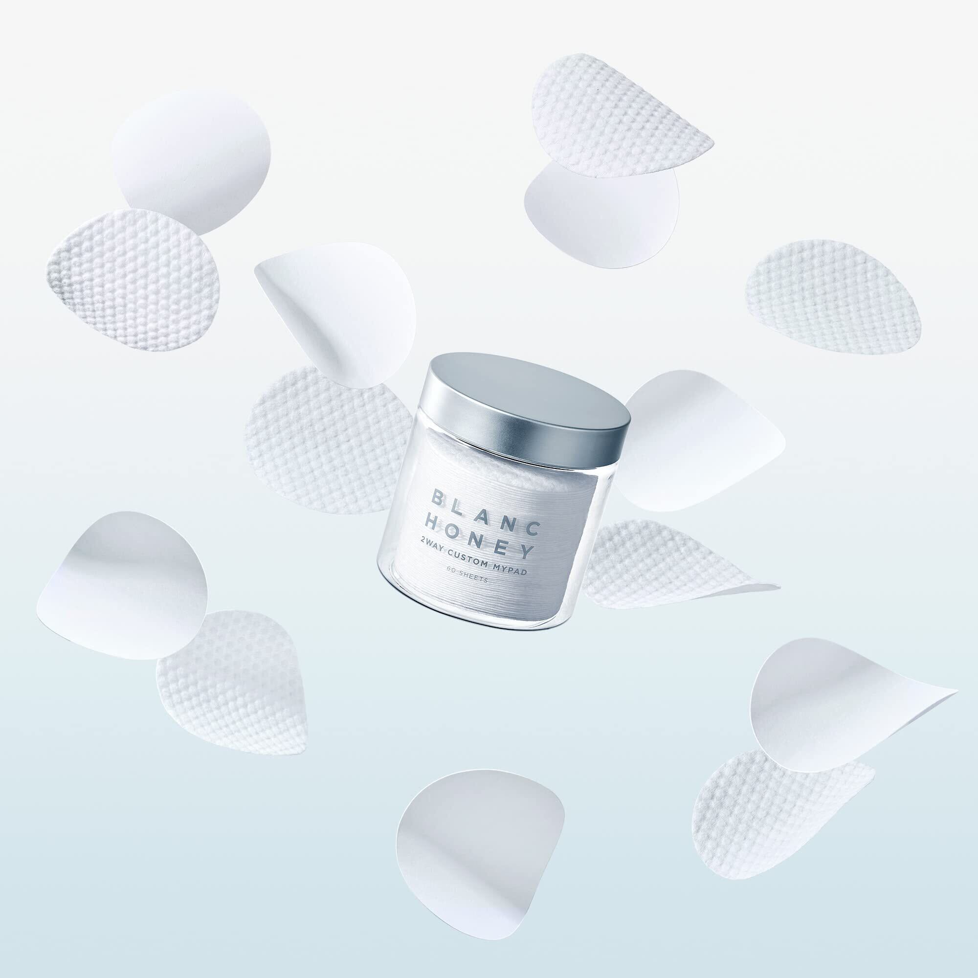 肌悩みやコンディションに合わせて、容器にブランハニー製品を入れ、パッドに浸してからお使いいただくことも可能です。また、スキンケアコットンとしてもお使いいただけます。