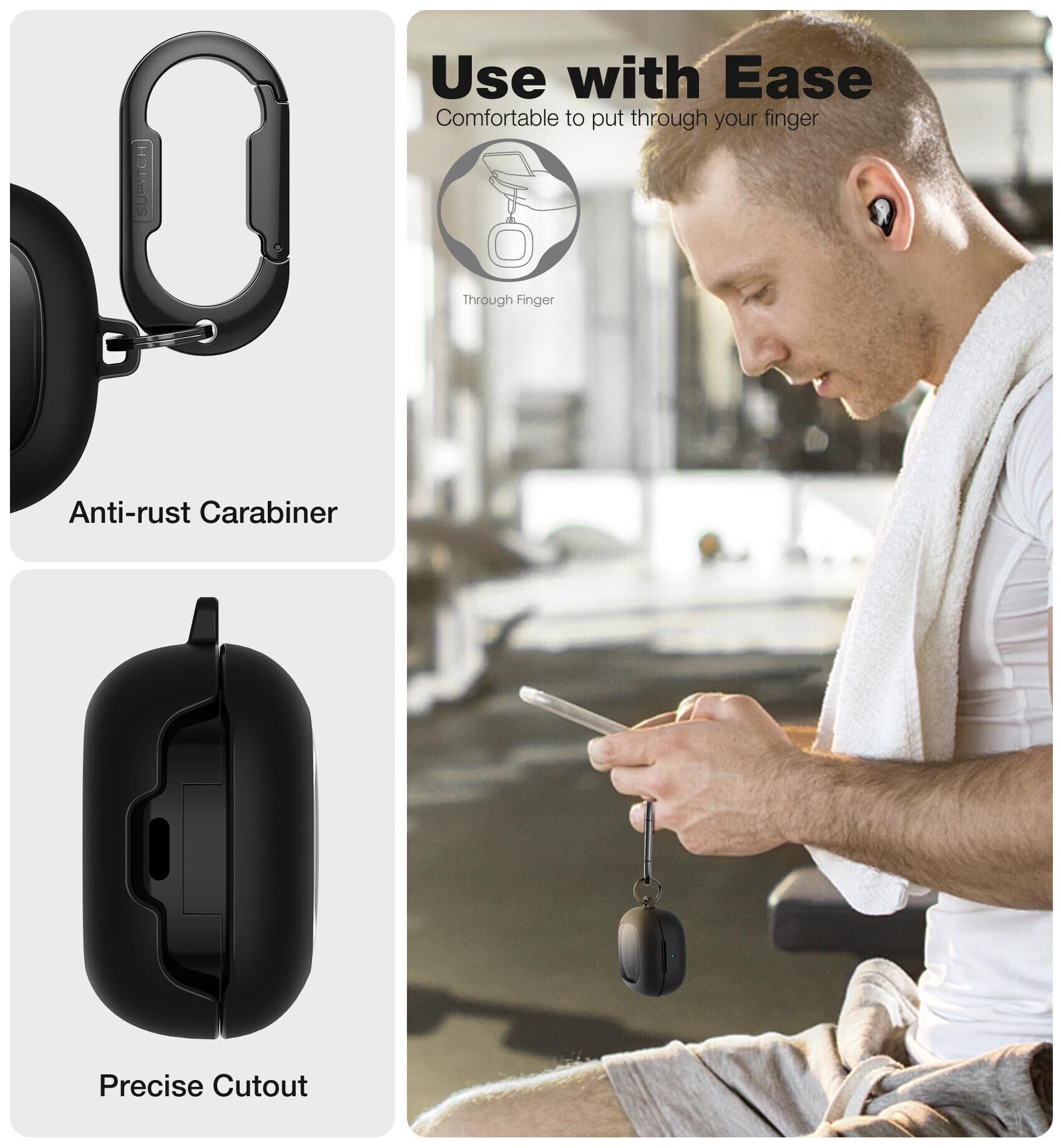 SURITCH 保護ケース Samsung Galaxy Buds FE(2023)/Buds 2 Pro(2022)/Buds 2(2021)/Buds Pro(2021)Buds Live(2020)用 耐衝撃性 頑丈 イヤホンカバー 高耐久カラビナ付き 充電ケース付き ブラック